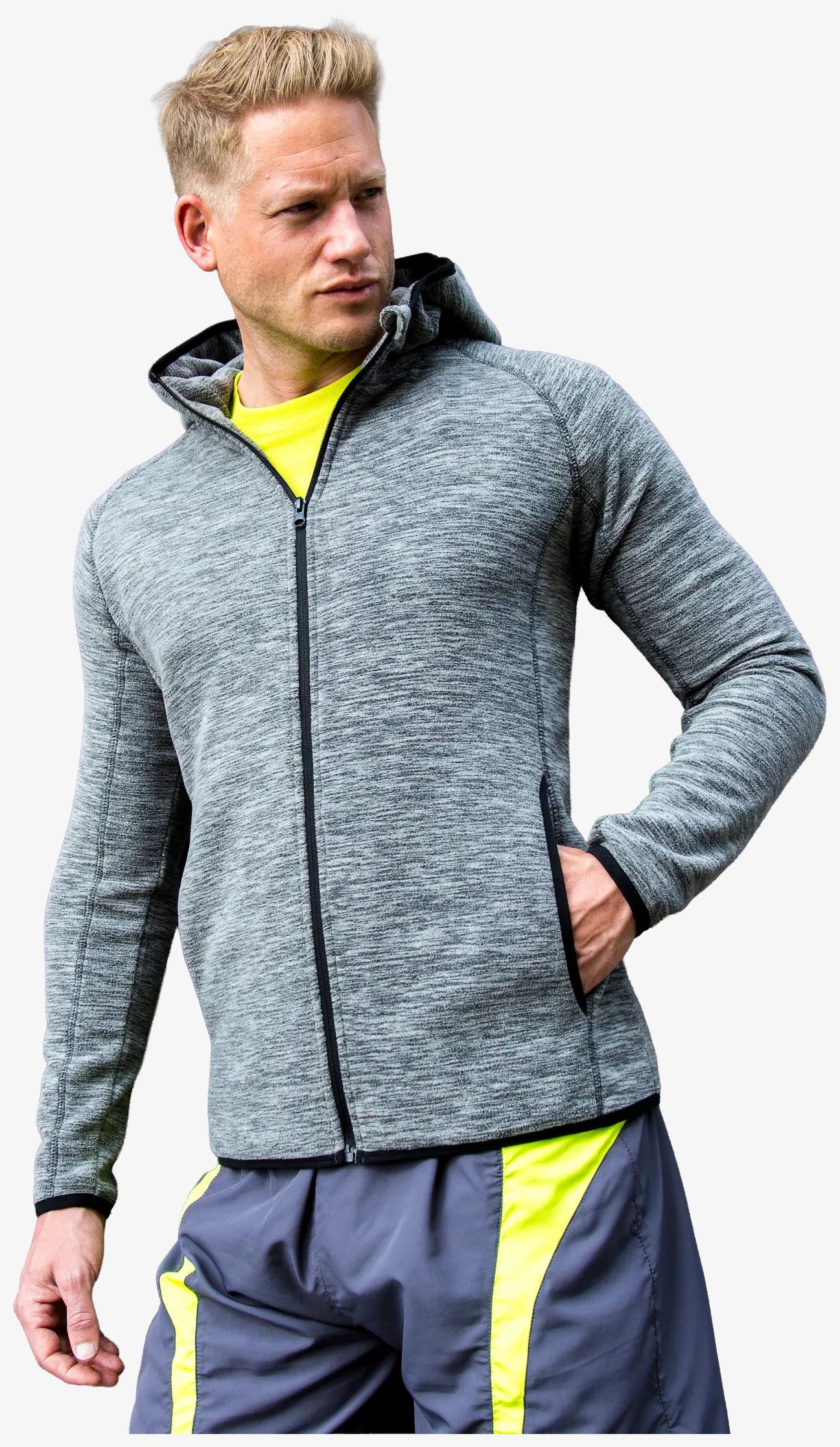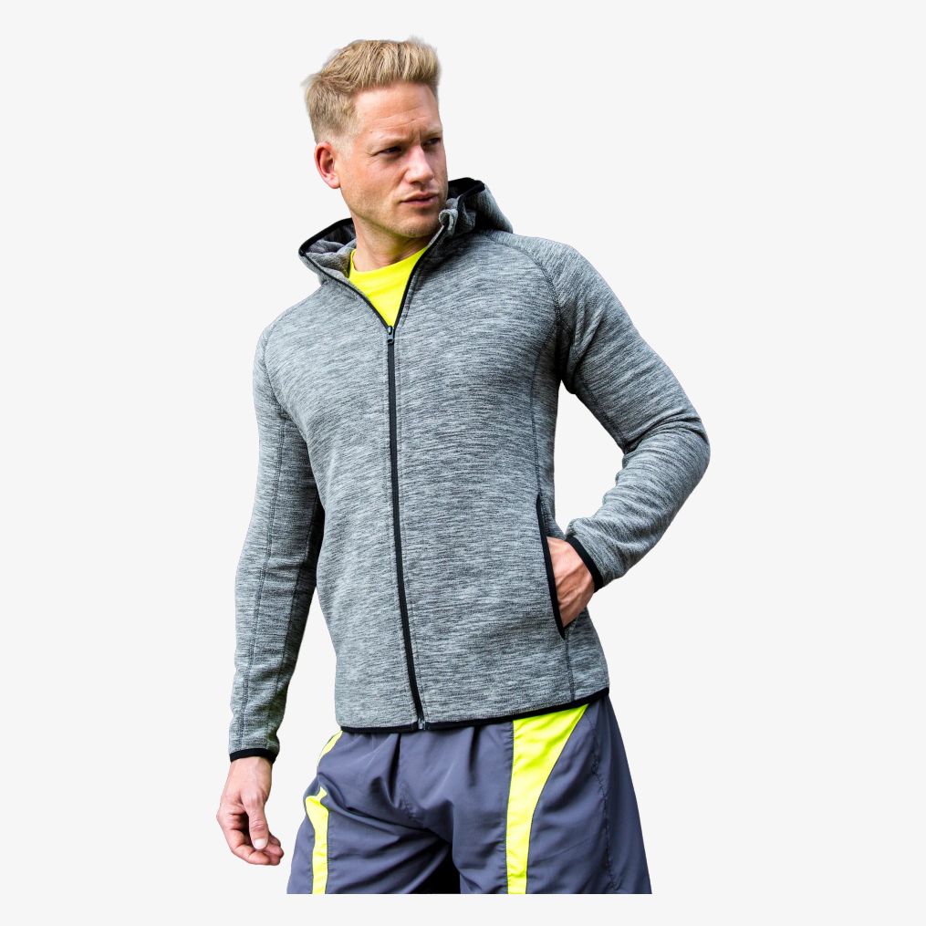 De Mens Microfleece Hoodi is een hooded sweatshirt met rits van rekbare stof met een zachte touch, met geborstelde microfleece voering. Opstaande kraag, dubbellaagse capuchon, zijzakken en kinbeschermer. Ademend en sneldrogend.