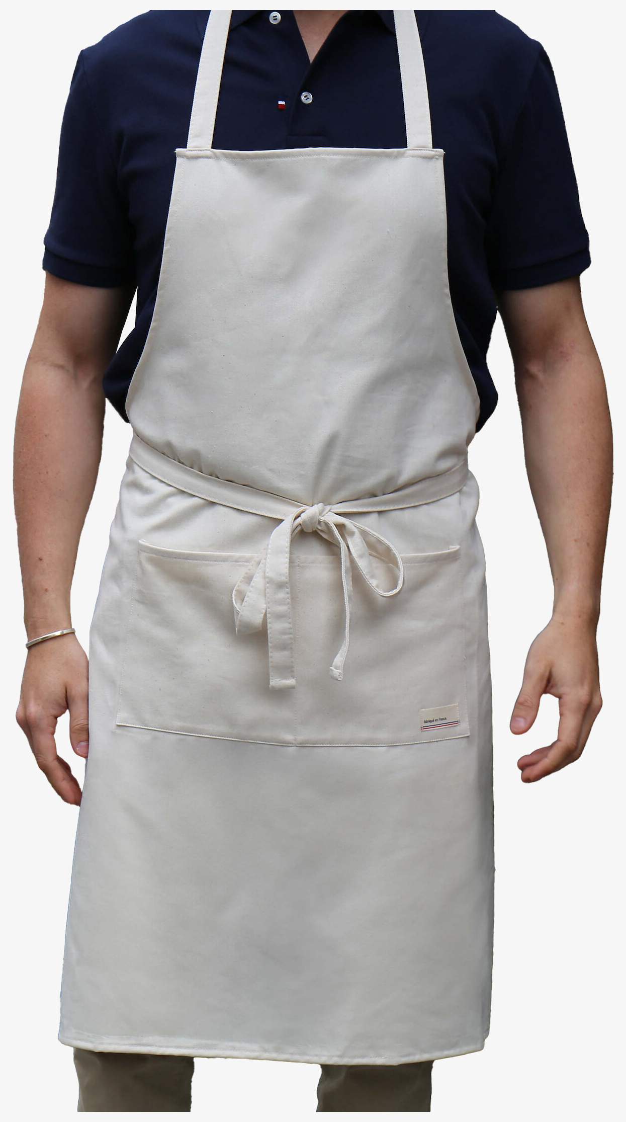 De lange schort Tanguy is vervaardigd van sanforized stof die 50% gerecycled katoen en 50% katoen combineert. Hij heeft een dubbele zak met compartiment en versterkte naden. Het vaste halskoord meet 61 cm, en brede koorden aan elke zijde maken een verstelbare strik mogelijk.