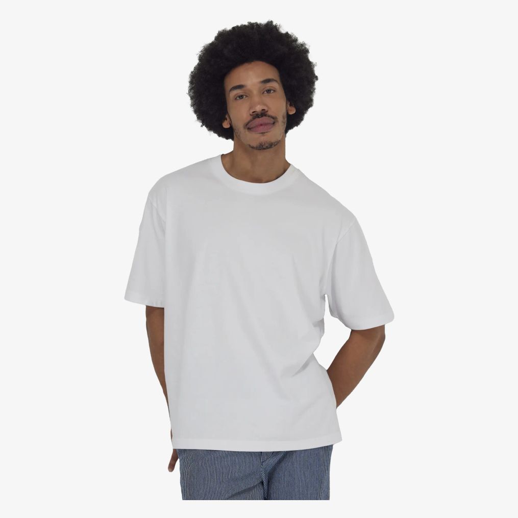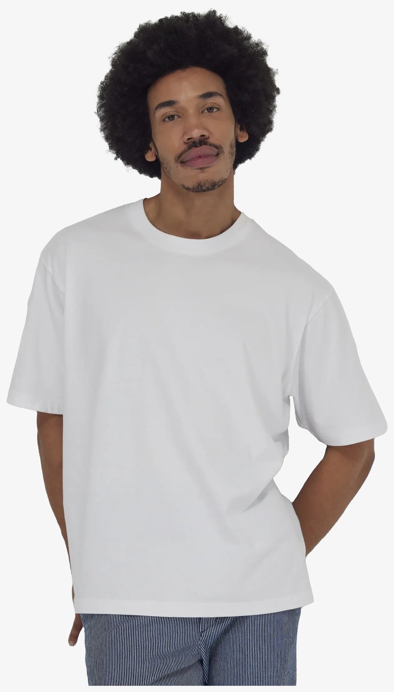 Het tee-shirt #E220 Oversized T is gemaakt van enkel jersey met zijnaden. Het heeft een brede geribde halslijn en vallende schouders die een losse, ontspannen pasvorm geven.