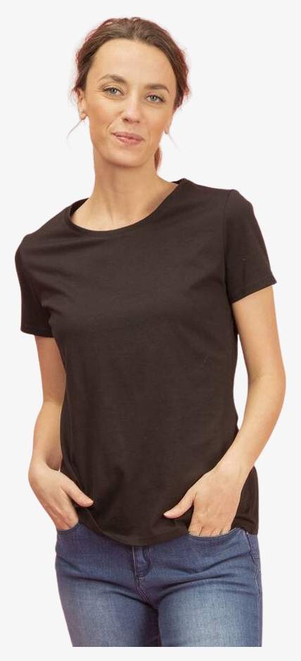 De tee-shirt Francine is gemaakt van gekamd biologisch katoen jersey. Hij heeft een getailleerde pasvorm met een ronde hals. Het ontbreken van een merklabel wordt gecompenseerd door een maatchip in de nek. De samenstelling is genaaid in de linkerzijnaad. De afwerking omvat een nekband en dubbele sierstiksels aan de onderkant van de mouwen. Een driekleurige vlag is bevestigd op de mouw.