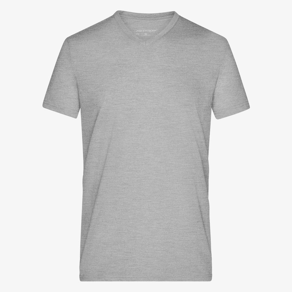 Het Men's Heather tee-shirt is vervaardigd in single jersey met een mix van polyester en katoen. Het heeft een ontspannen en comfortabele pasvorm en een V-hals met elastaan voor betere aanpassing.