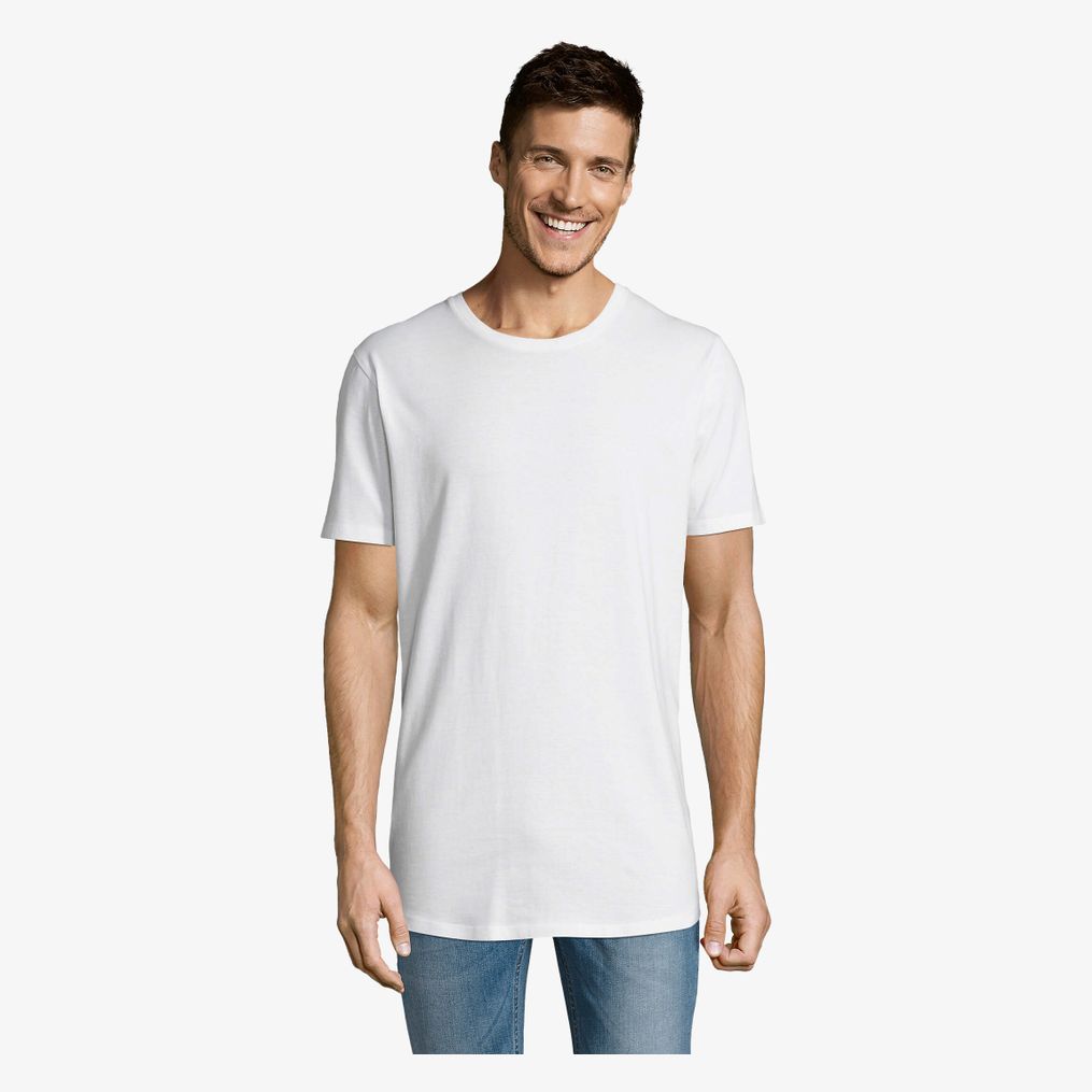 De Magnum Men is een lange heren tee-shirt in jersey 150, gemaakt van 100% Ringspun katoen. Het heeft een ronde hals met rib-breisel in katoen, een genaaide snit met grote lengte en een afgeronde onderkant. Een nekband is aanwezig aan de binnenkant van de hals.