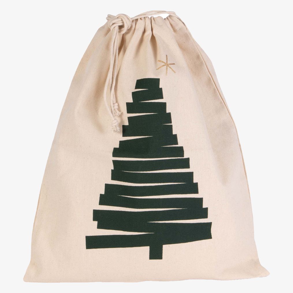 De sac coton à cordon motif sapin is gemaakt van 100% katoen met een trekkoordsluiting. Het heeft een dennenboomprint en de afmetingen zijn 38x45 cm.