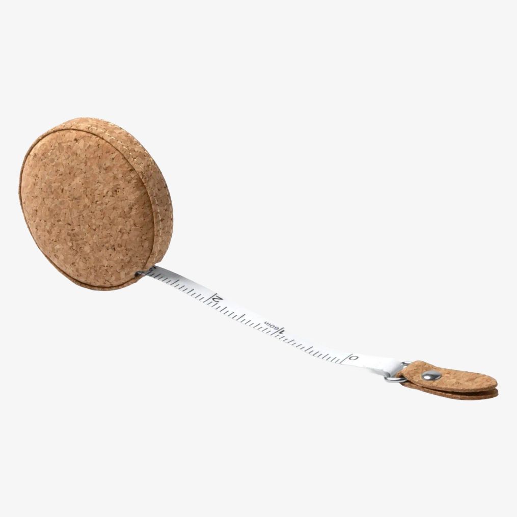 Miara zwijana BROSEL ma 1,5 m długości i posiada strukturę z korka. Prezentacja odbywa się w pudełku eko-projektu.