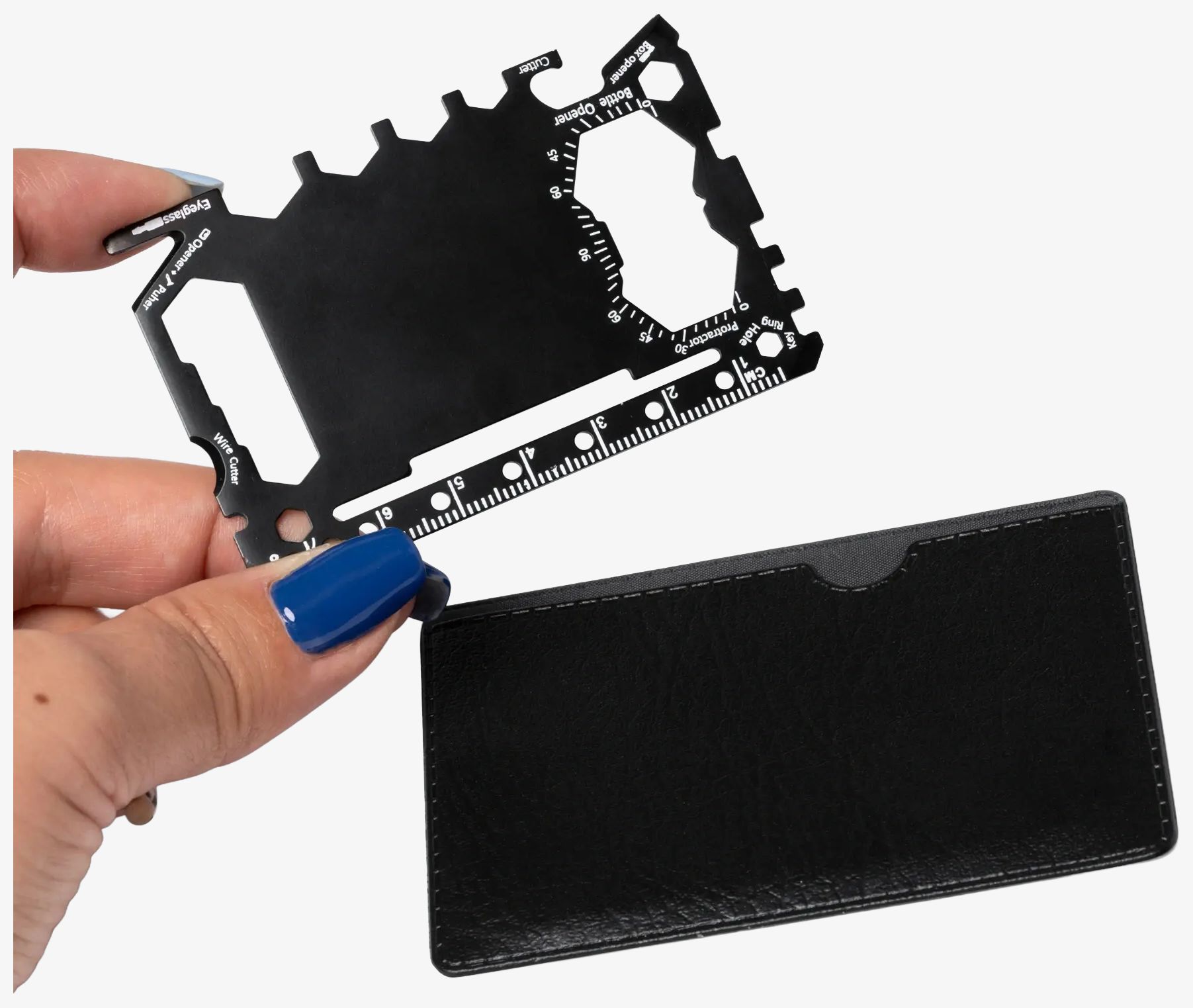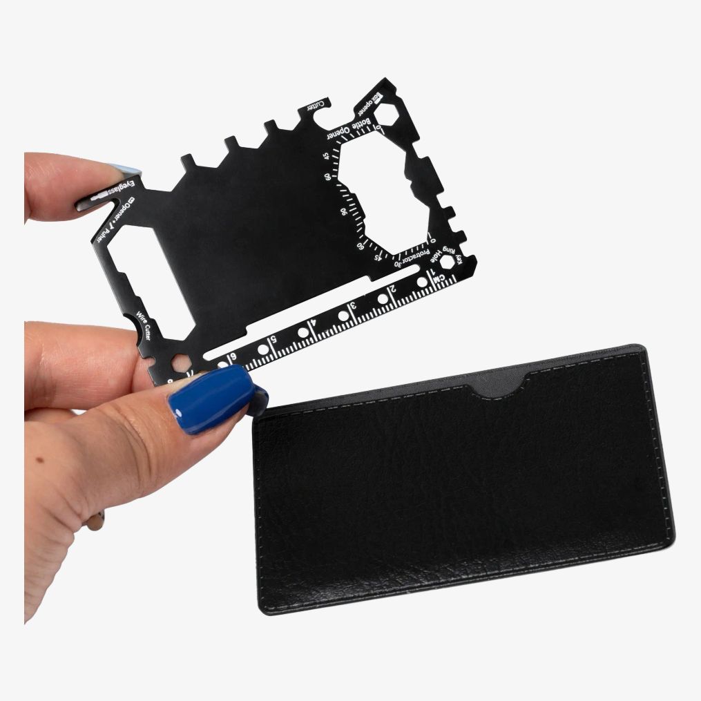 TRADIE to narzędzie wielofunkcyjne ze stali nierdzewnej wyposażone w 17 funkcji. Zawiera otwieracz do puszek, ostry nóż, śrubokręt, linijkę, otwieracz do butelek, klucz nastawny, klucz motylkowy, piłę, wskaźnik kierunku i kątomierz. Zapakowane w etui PU.