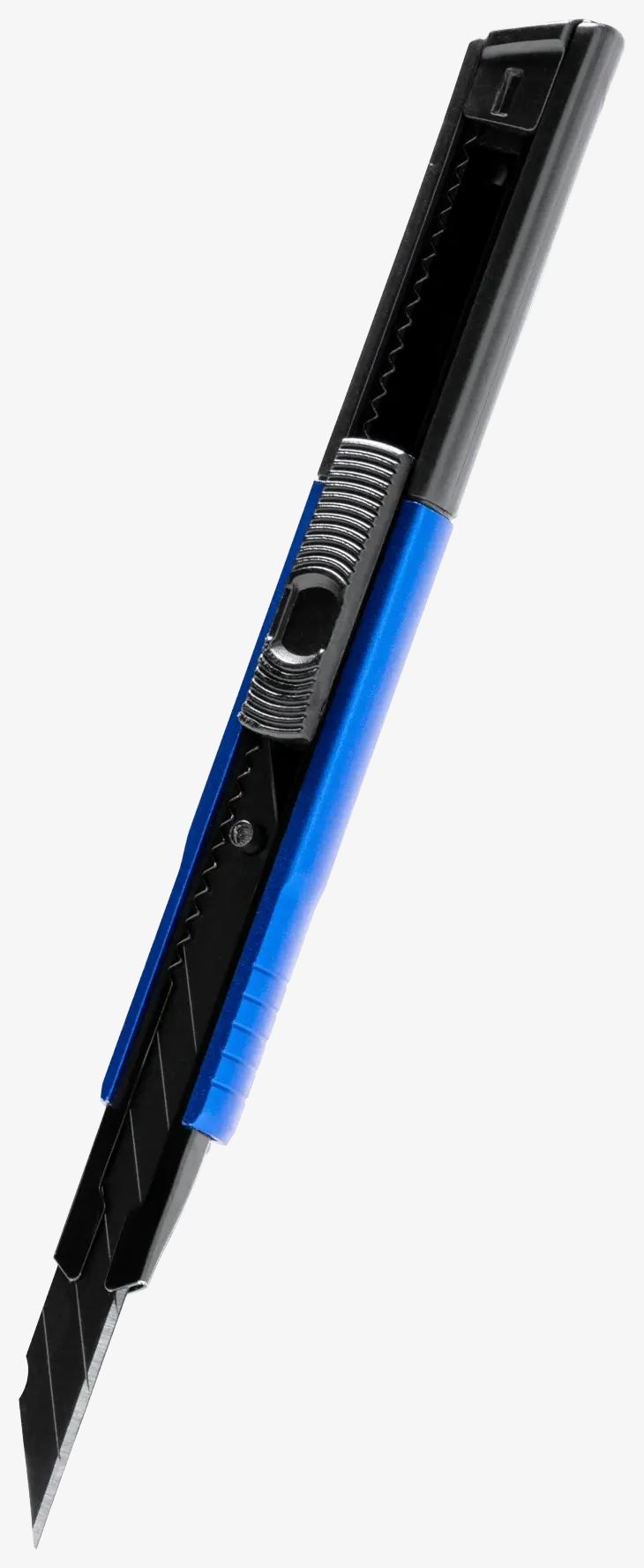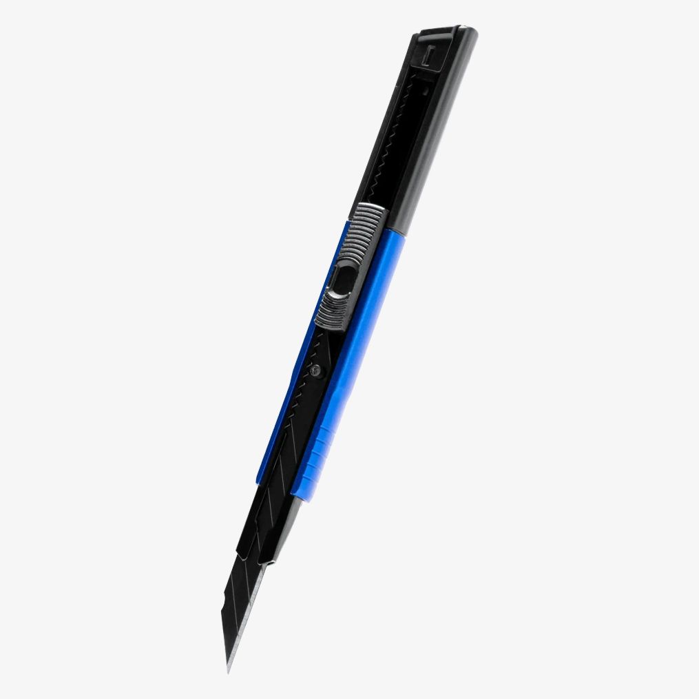RAZER cutter z recyklingowanego aluminium zawiera ostrze ze stali nierdzewnej i korpus z recyklingowanego aluminium. Zdejmowana osłonka pozwala regulować ostrze.