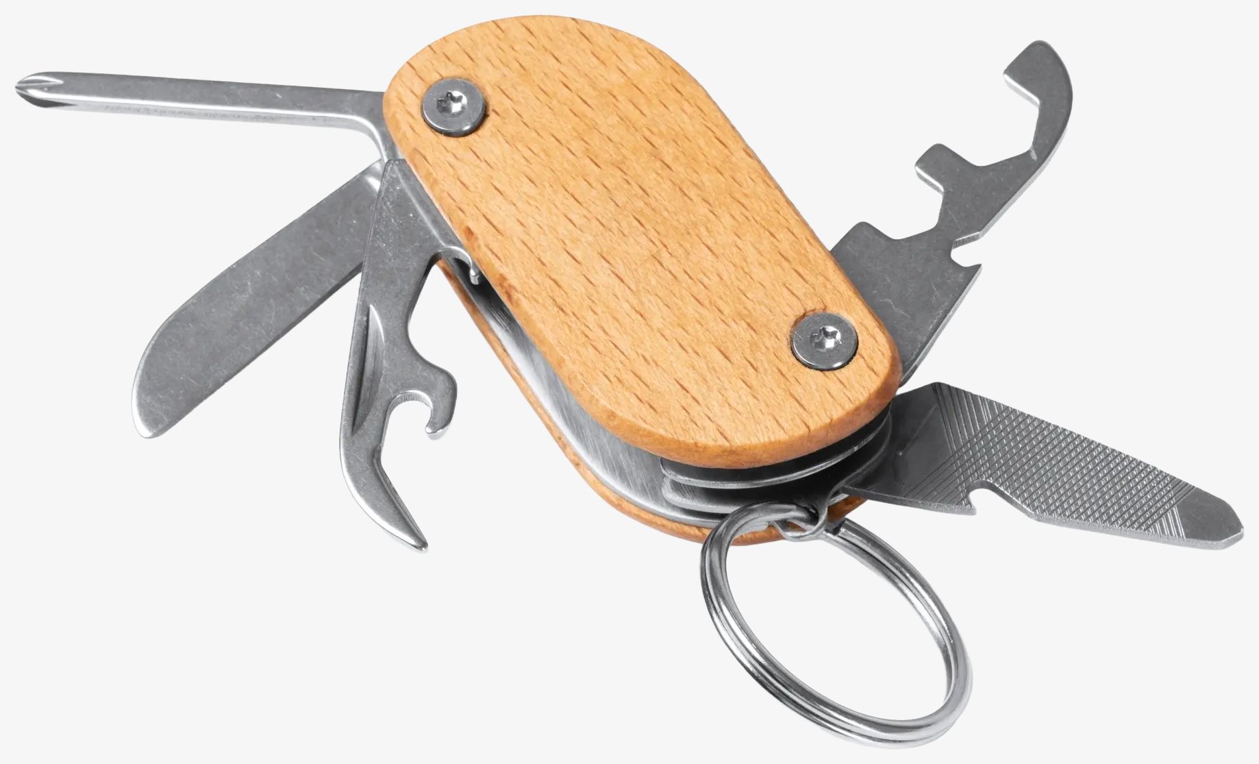 CARAVEL to wielofunkcyjne narzędzie z korpusem z drewna i akcesoriami ze stali nierdzewnej. Zawiera pięć funkcji: pilnik, żyletka, otwieracz do butelek, śrubokręt otwieracz.