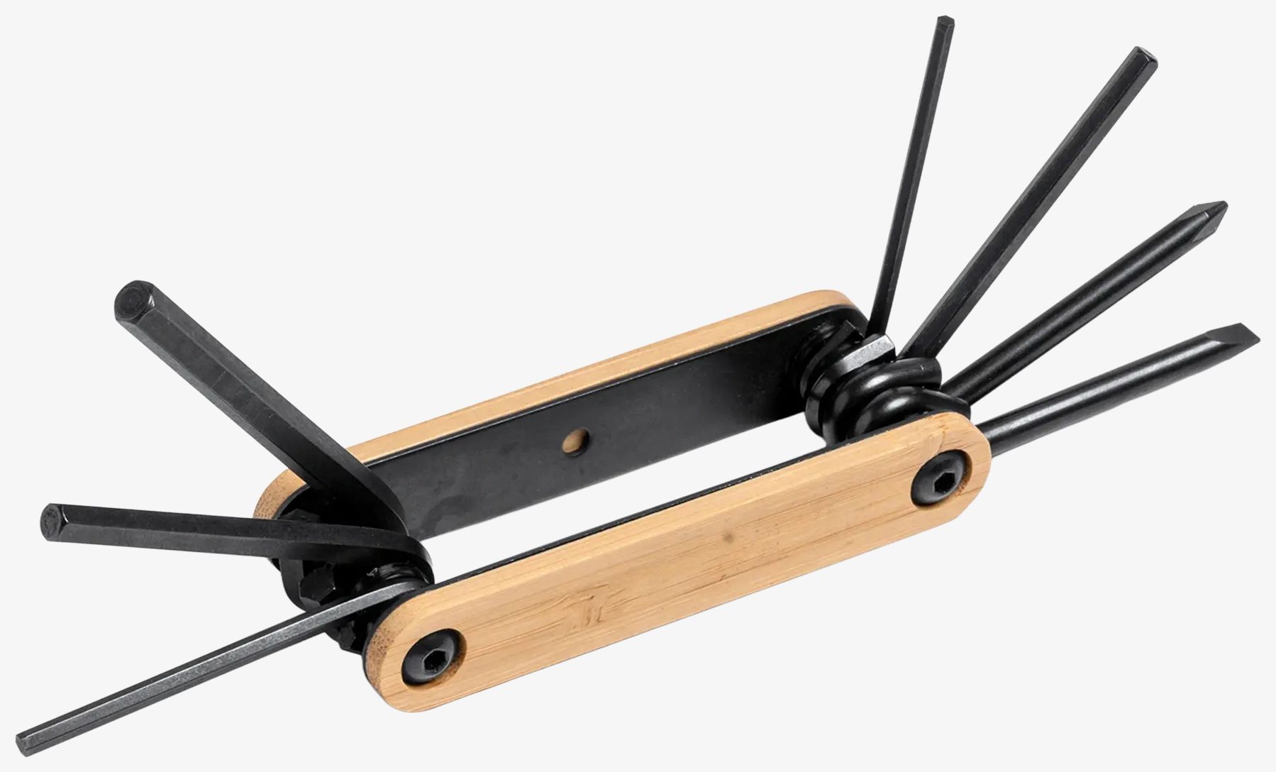 Wielofunkcyjne narzędzie wykonane ze stali nierdzewnej z wieloma zintegrowanymi akcesoriami. Prezentowane w pudełku ekodesign.