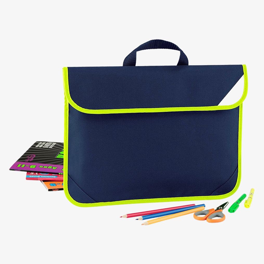 Enhanced-Viz Book Bag to teczka na dokumenty przeznaczona do przenoszenia dokumentów w kompaktowym formacie, z uchwytem, identyfikatorem i odblaskowym panelem Viz. Pojemność 4 litry. Wymiary 38 x 28 cm. Maksymalna powierzchnia nadruku 28 x 16 cm.