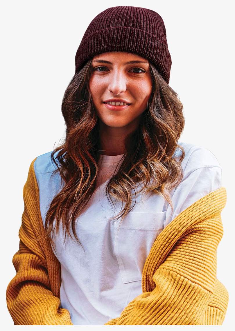 Czapka z podszewką i obracanym wykończeniem łączy 70% akrylu i 30% wełny, tworząc mieszany skład dostosowany do codziennego użytku.