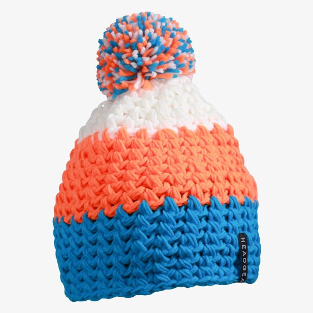 mb7940 - Crocheted Cap with Pompon - pacific/neon_orange/white