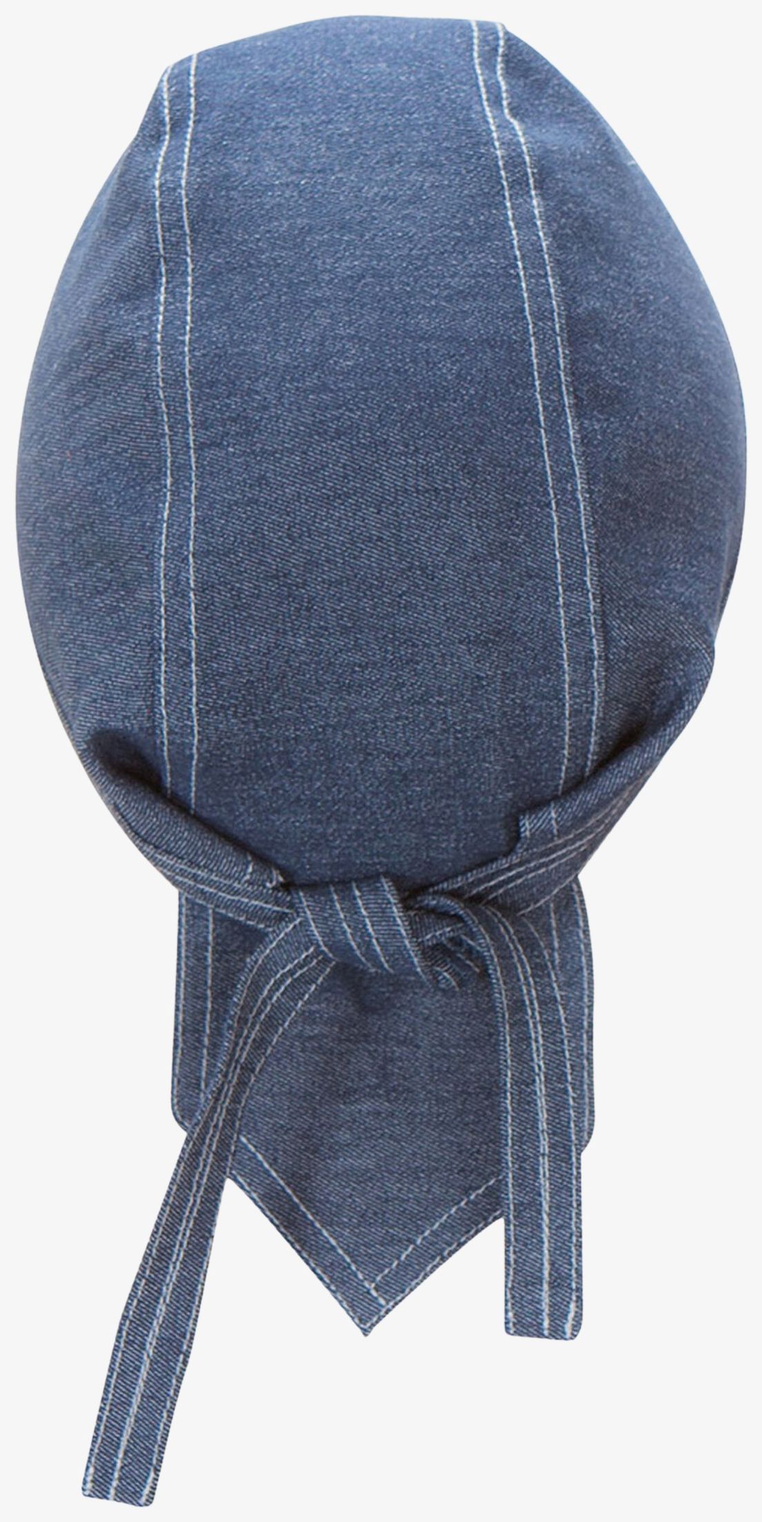 The calot denim is made of 55% polyester, 42% cotton and 3% elastane. It has cords at the ends for adjustment.