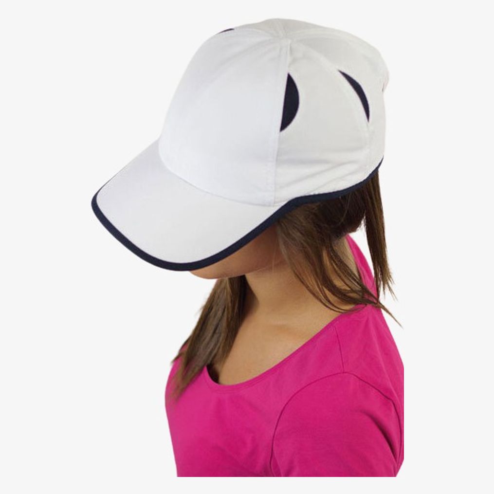 Czapka Gym wykonana z mikrofibry poliestrowej. Posiada 6 paneli i lekko wygięty daszek. Wykończenie obejmuje kontrastową opaskę i zapięcie na rzep.