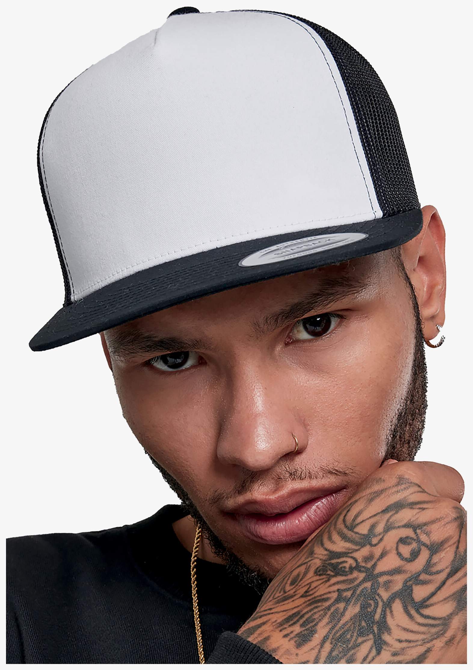 Czapka z daszkiem Classic Trucker Cap ma biały panel z przodu oraz tylną siatkę dla lepszej wentylacji i wyściełaną opaskę. Posiada płaski daszek z ośmioma liniami przeszyć i podszewkę bougran z przodu. Regulowany pasek wykonany z dopasowanego plastiku.
