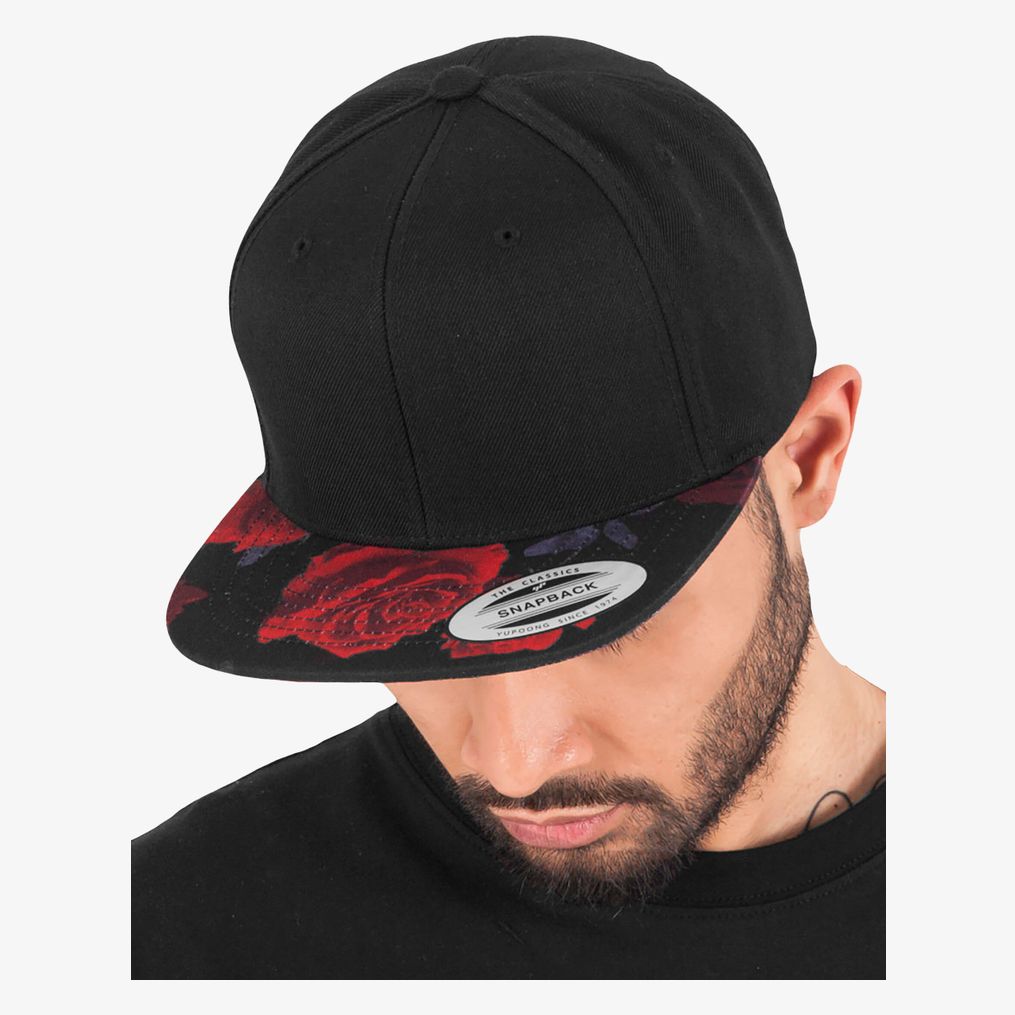 Czapka Roses Snapback o stylu baseball z wzmocnioną przednią częścią i plastikowym zapięciem snap. Posiada nadruk róż na daszku, który kontrastuje z miejskimi stylizacjami. Materiał zewnętrzny 1 składa się z 80 % akrylu i 20 % wełny, natomiast materiał zewnętrzny 2 to 100 % poliester.