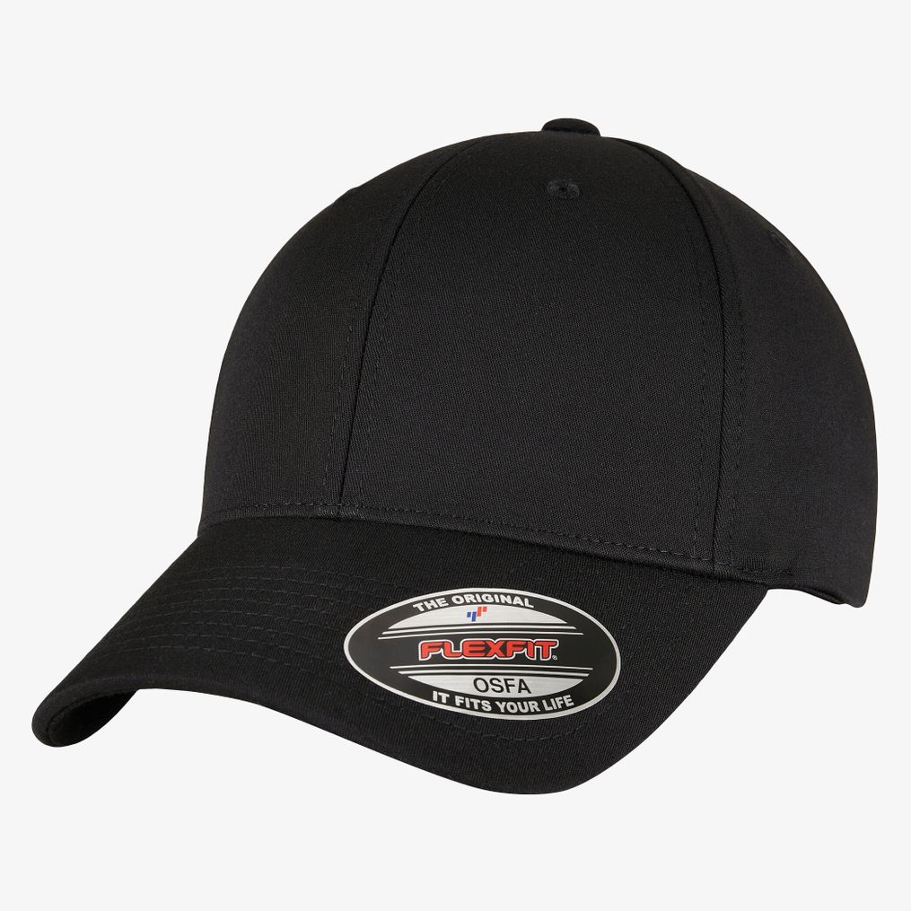Czapka 6-panelowa Alpha Shape Flexfit jest całkowicie zamknięta z lekko zakrzywionym daszkiem posiadającym 8 szwów na górze. Skład to 63% poliester, 34% wiskoza i 3% elastan.