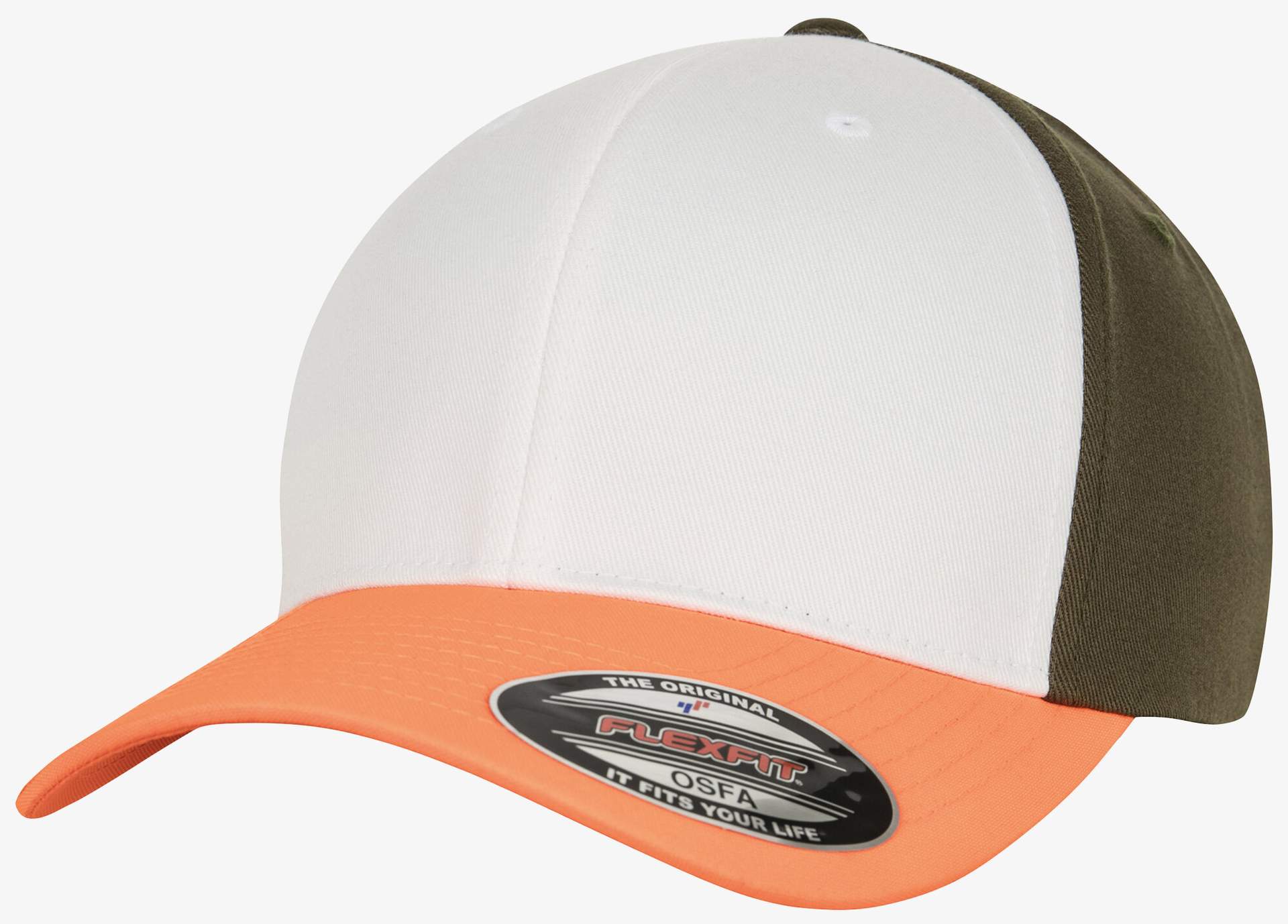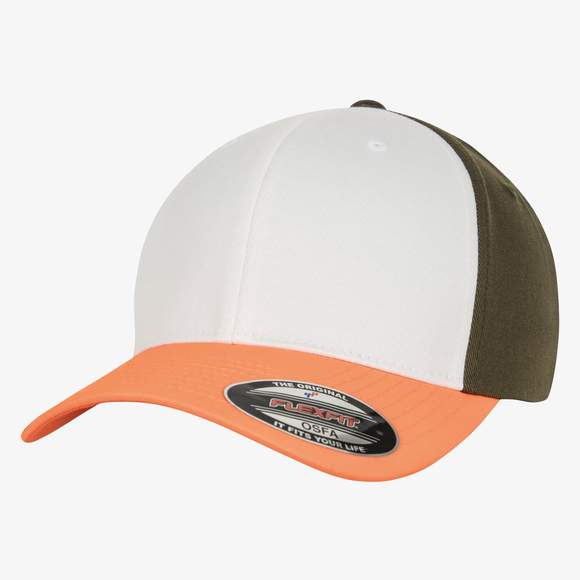 6277TT - 3-Tone Flexfit Cap - neon_orange/white/olive