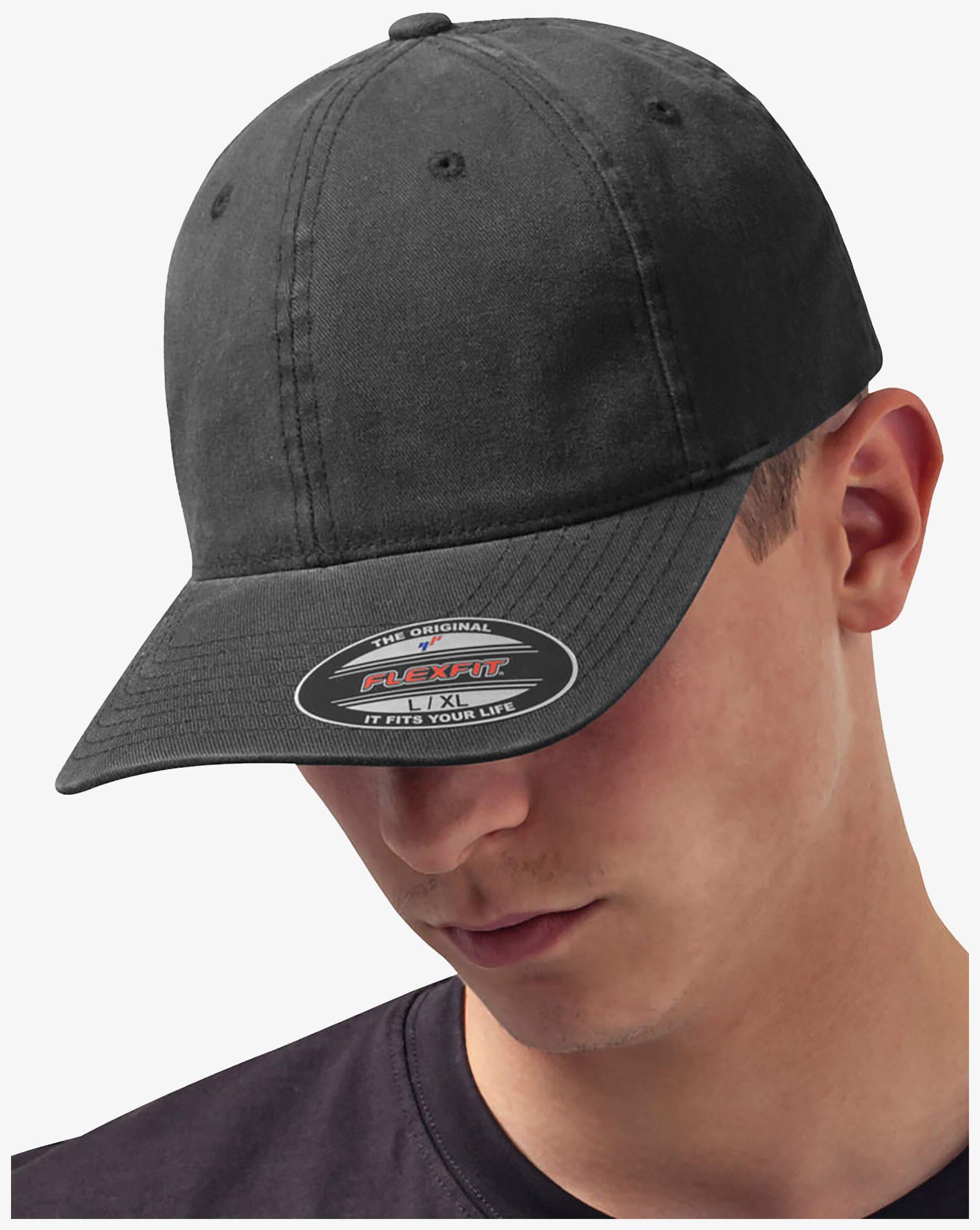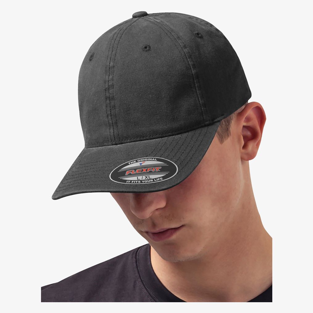 Czapka Flexfit z wypranym bawełnianym materiałem posiada lekko usztywniony klasyczny niski kształt z dopasowanym spodem daszka. Materiał głównie bawełniany zapewnia komfort i wygląd vintage.