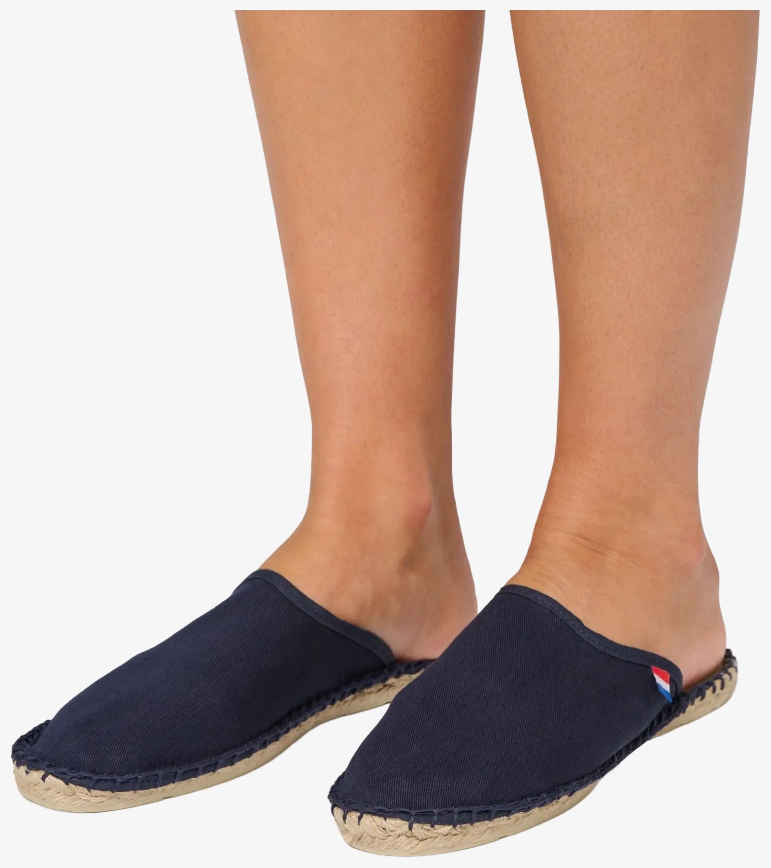 mules espadrilles wykonane są z 100% bawełnianego płótna z podeszwą z wulkanizowanej gumy i juty. Wykończenie taśmą zawiera tkana metkę z trzema kolorami po lewej stronie. French manufacturing.