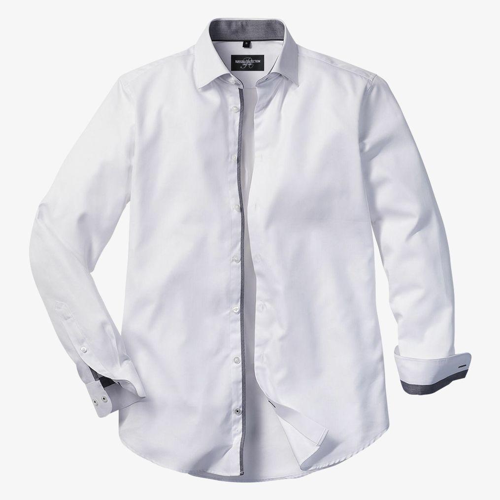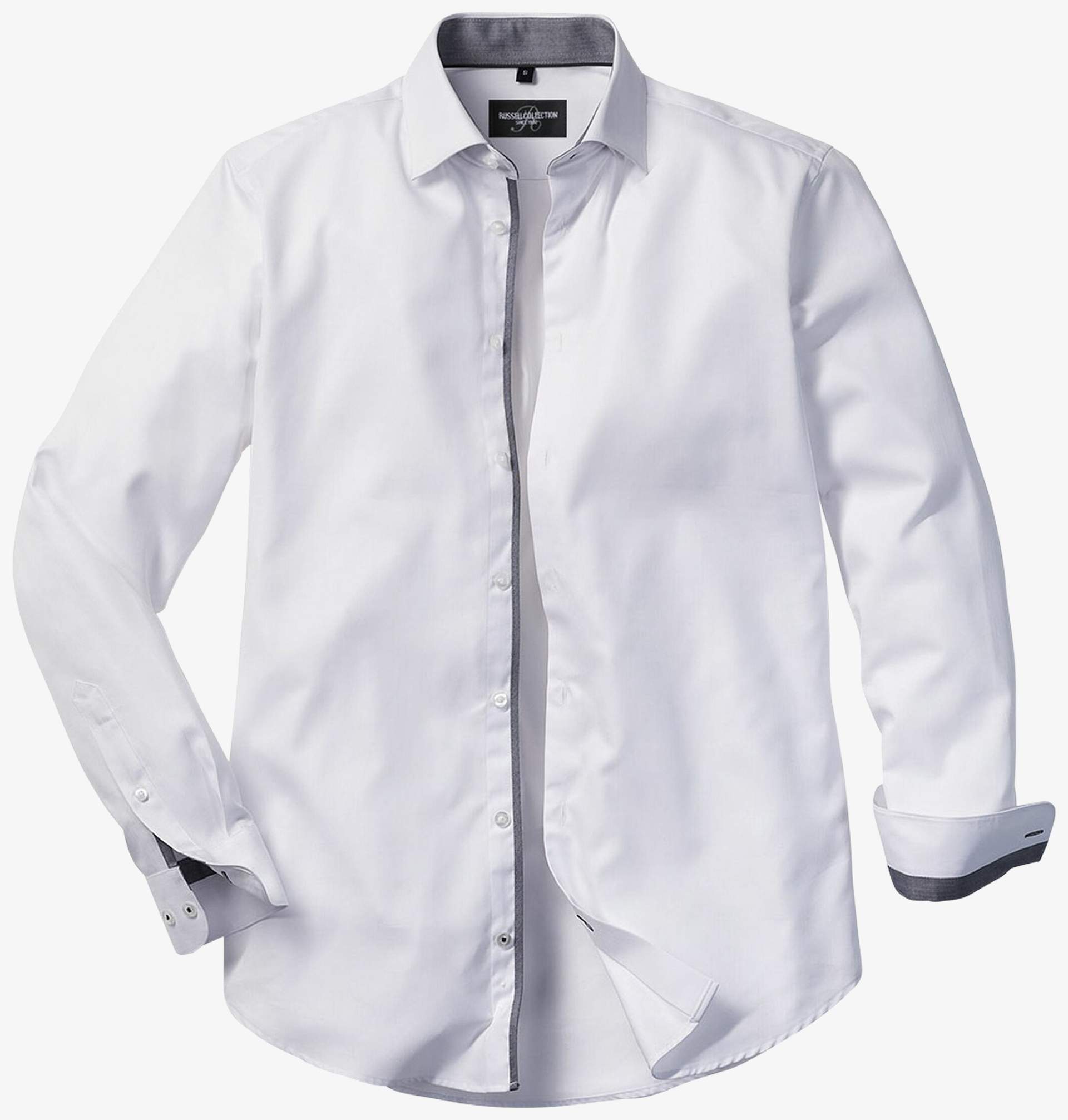 R-964M-0 - Men’s long sleeve tailored contrast herringbone shirt Russell Collection