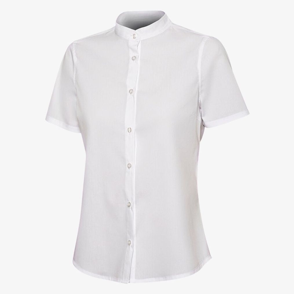 La chemisette femme col mao posiada zapinanie na guziki z listwą oraz kołnierz mao. Zawiera zaszewki z przodu i z tyłu dla dopasowanego kroju oraz wstawki na plecach. Dołączony jest zapasowy guzik.