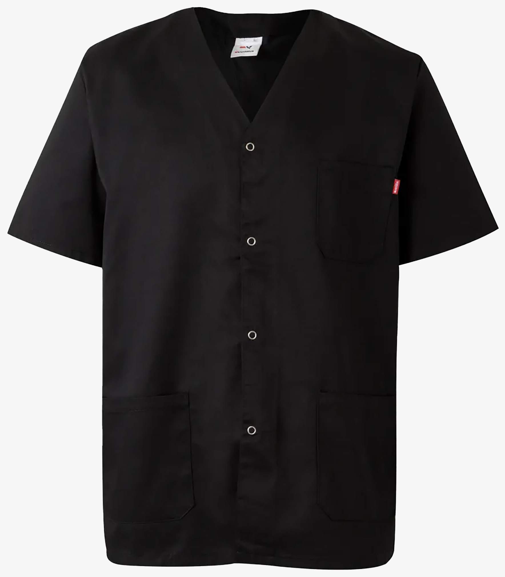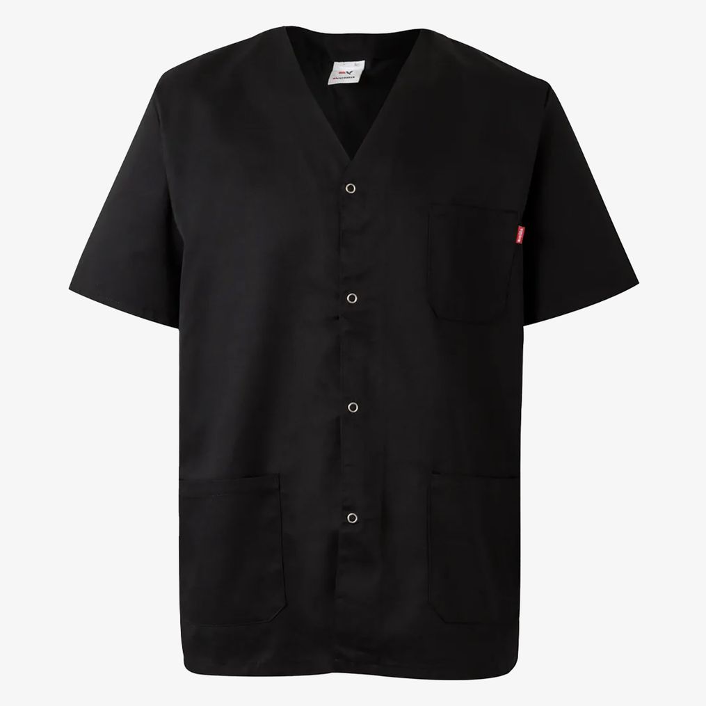 Kurtka na zatrzaski zaprojektowana do użytku zawodowego. Posiada centralne zapięcie na zatrzaski, kołnierz w szpic oraz trzy kieszenie. Skład: 65% poliester, 35% bawełna.