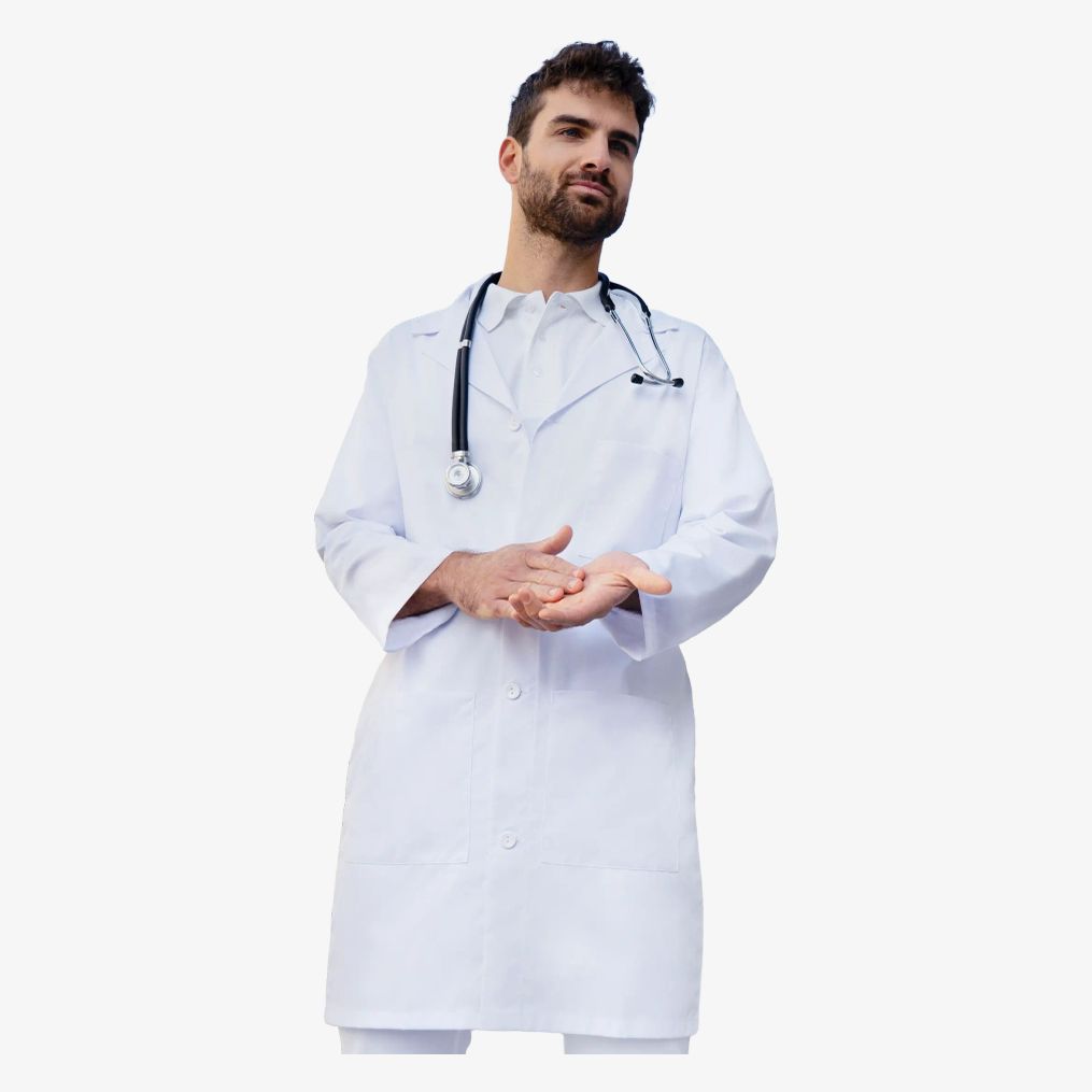 Bluzka tunikowa męska ma kołnierz stójkowy i prosty krój. Posiada 2 naszywane boczne kieszenie z ukrytą kieszenią wewnętrzną. Ukryta listwa zapięcia wyposażona jest w 6 zatrzasków. Boczki są rozcięte, co ułatwia ruchy.