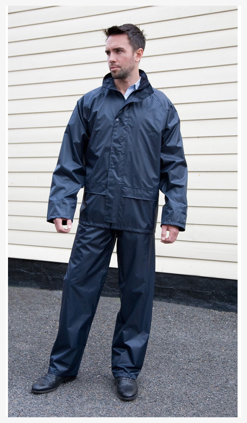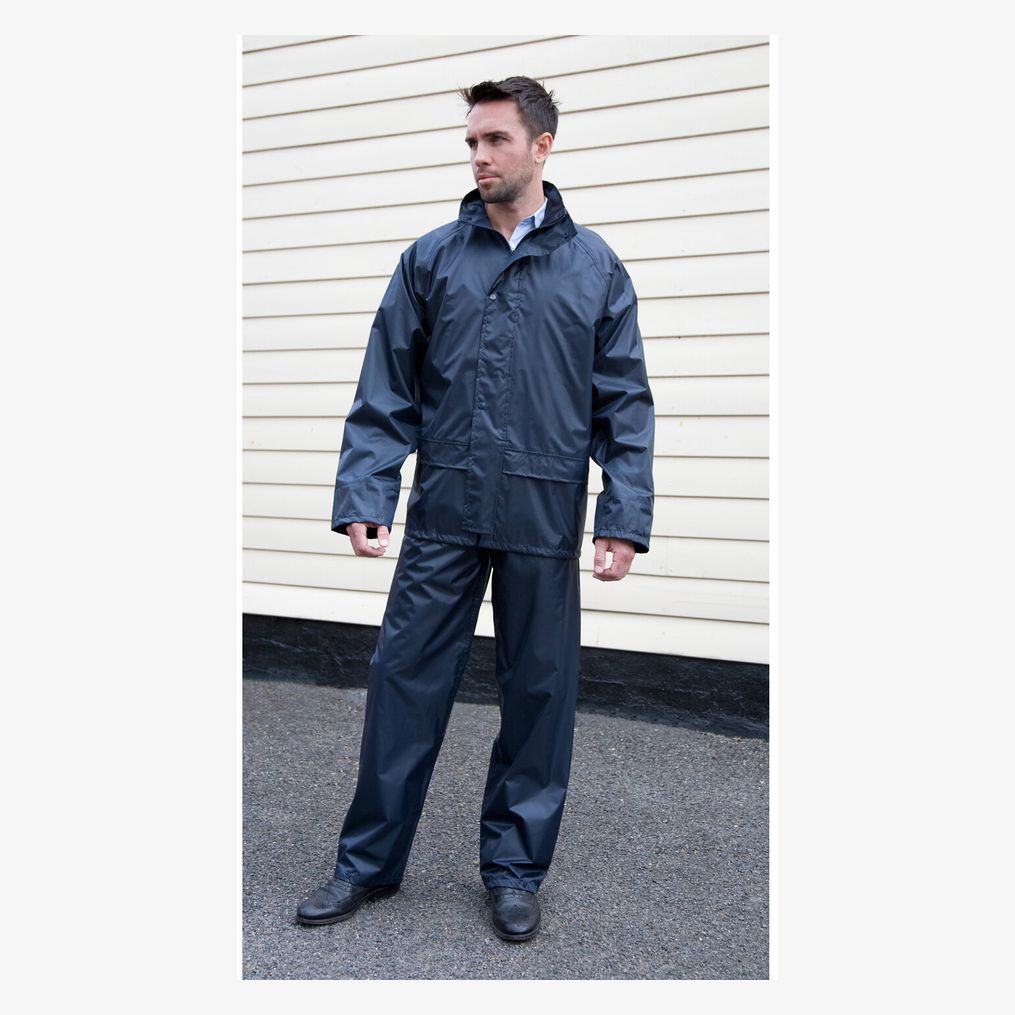 Ensemble de Pluie składa się z kurtki i spodni zaprojektowanych w celu ograniczenia narażenia na deszcz. Kurtka obejmuje zintegrowany kaptur, zapięcie na suwak oraz przednie kieszenie. Spodnie mają elastyczną talię, boczne kieszenie dostępowe oraz regulowane kostki.
