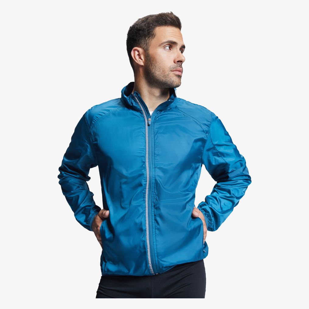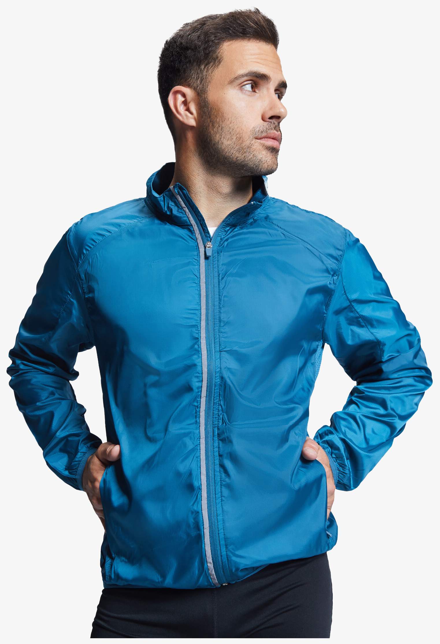 Wiatrówka z tkaniny technicznej Glasgow jest lekka i posiada podszewkę na kołnierzu z oddychającej tkaniny z taśmą wzmacniającą. Ubranie ma odwrócony zamek błyskawiczny z ochroną podbródka oraz element odblaskowy. Tkanina jest oddychająca w pachach. Z przodu znajdują się kieszenie na zamek oraz wewnętrzna kieszeń do przechowywania. Mankiety u dołu są elastyczne, a z tyłu widoczne są elementy odblaskowe.