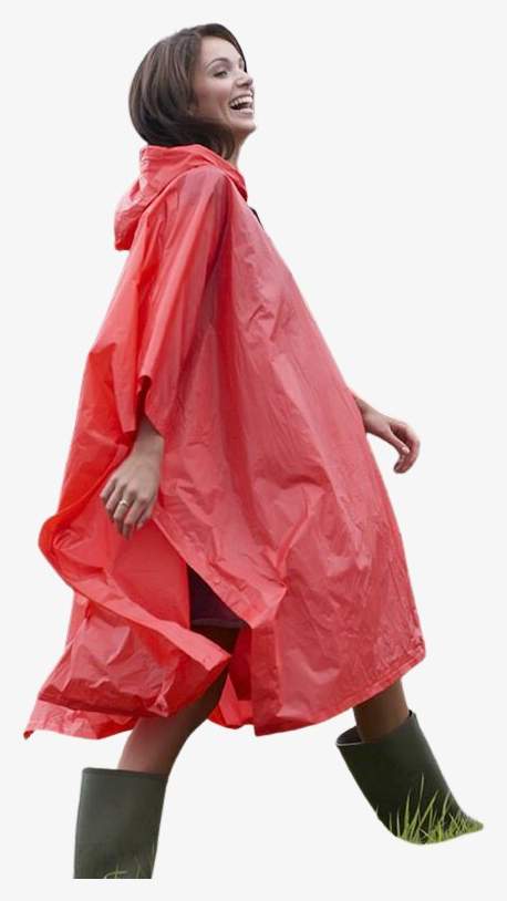 The Plastic poncho is a waterproof windbreaker made of PVC with a hood equipped with a drawstring.