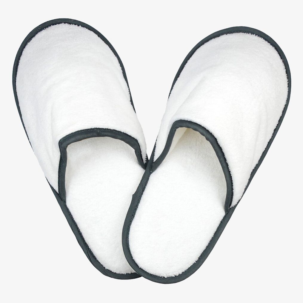 Kapcie z bawełny czesankowej wykonane są z miękkiego materiału frotte o wysokiej chłonności. Podeszwa ma tłoczony wzór dla lepszej przyczepności i komfortu.