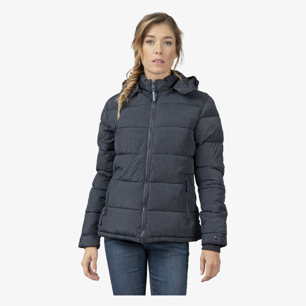 Damska pikowana kurtka zawiera odpinany i formowany kaptur, dwie kieszenie boczne na zamek, wewnętrzną kieszeń na zamek oraz kolejną z taśmą na rzepa. Mankiety wyposażone w dzianinę dla dopasowania.