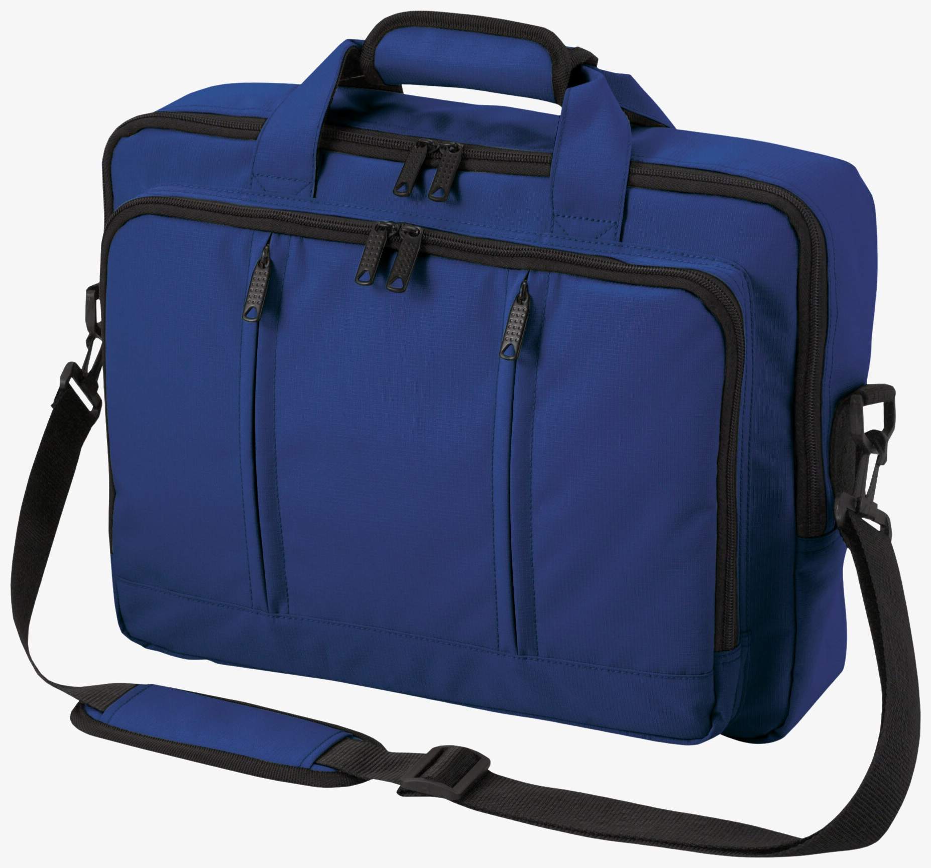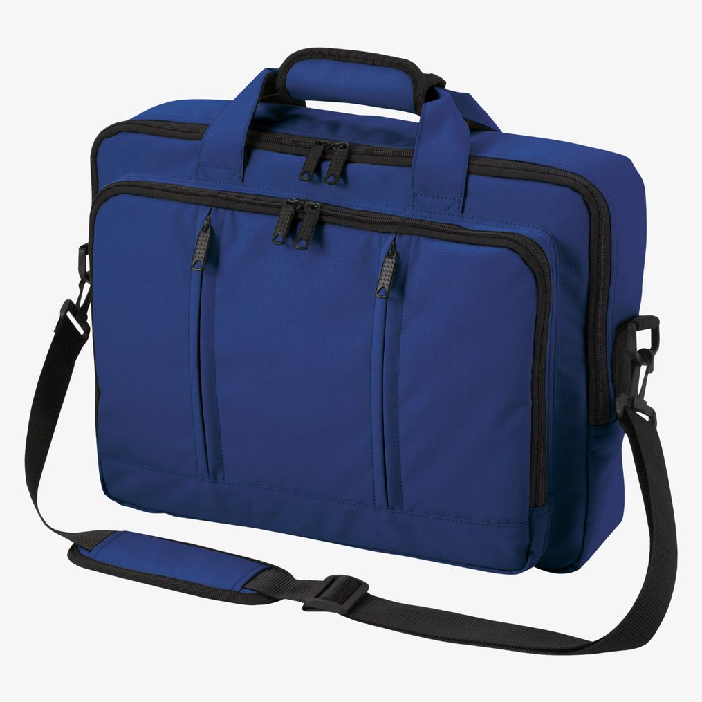Laptop backpack Economy to torba na laptopa, którą można nosić jako torbę lub plecak. Zawiera kieszeń na paski, wiele zapinanych na zamek kieszeni z przodu oraz wyściełaną główną przegrodę z organizatorem. Pasek na ramię jest regulowany i odpinany.