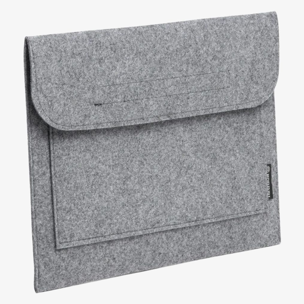 Osłona na laptop 38 cm z filcu z recyklingu z wzorem Vigor zapewnia trwałą i funkcjonalną ochronę. Jej klapa z taśmą rzepową pozwala na szybki dostęp, uniemożliwiając jednocześnie przesuwanie się. Dwa dodatkowe przegródki ułatwiają zorganizowane przechowywanie akcesoriów i dokumentów.