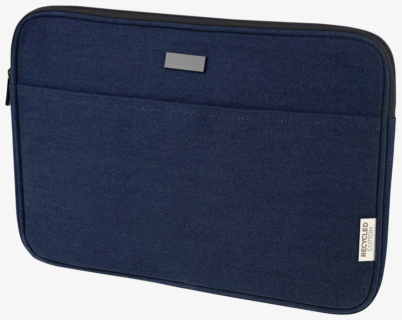 Pokrowiec na laptopa Joey 2 L z recyklingowanego płótna zawiera chronioną przegrodę na laptopa oraz otwartą przednią kieszeń z zapięciem na rzepy. Jego konstrukcja łączy recyklingowane płótno z podszewką RPET.