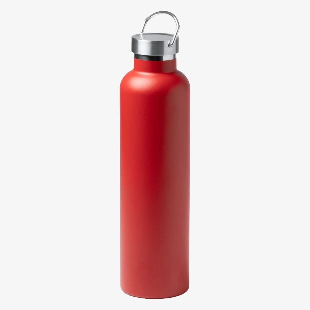 Termiczna butelka ze stali nierdzewnej 304 posiada matowe wykończenie oraz pojemność 1 litra. Wyposażona jest w uchwyt transportowy.