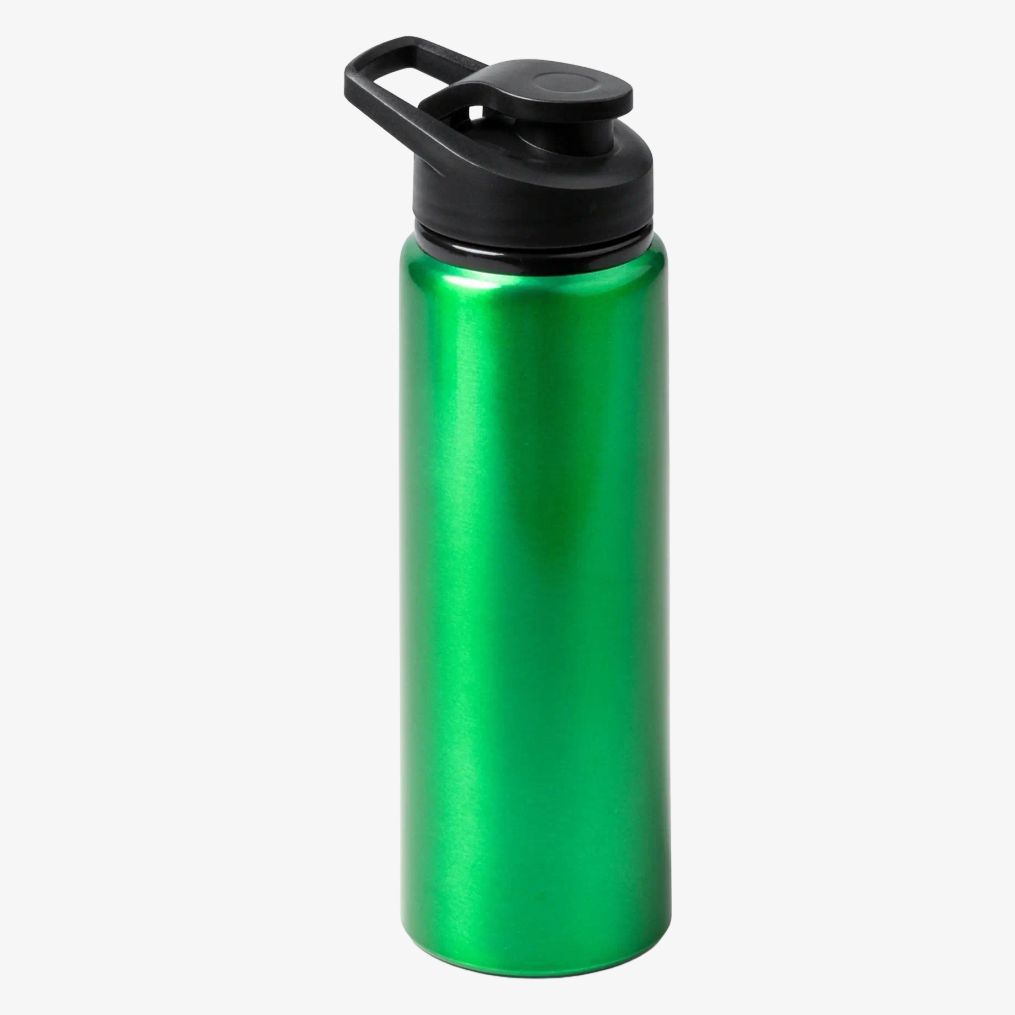 Butelka z aluminium z recyklingu RAIDEN charakteryzuje się metalicznym wykończeniem oraz zakrętką zabezpieczającą z uchwytem do przenoszenia. Jej pojemność 800 ml pozwala na użytkowanie w biurze lub na zewnątrz.