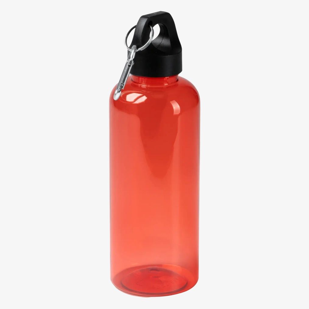 Butelka TAKEL posiada korpus z RPET oraz zakrętkę z uchwytem do przenoszenia z wbudowanym karabińczykiem. Jej pojemność to 580 ml.