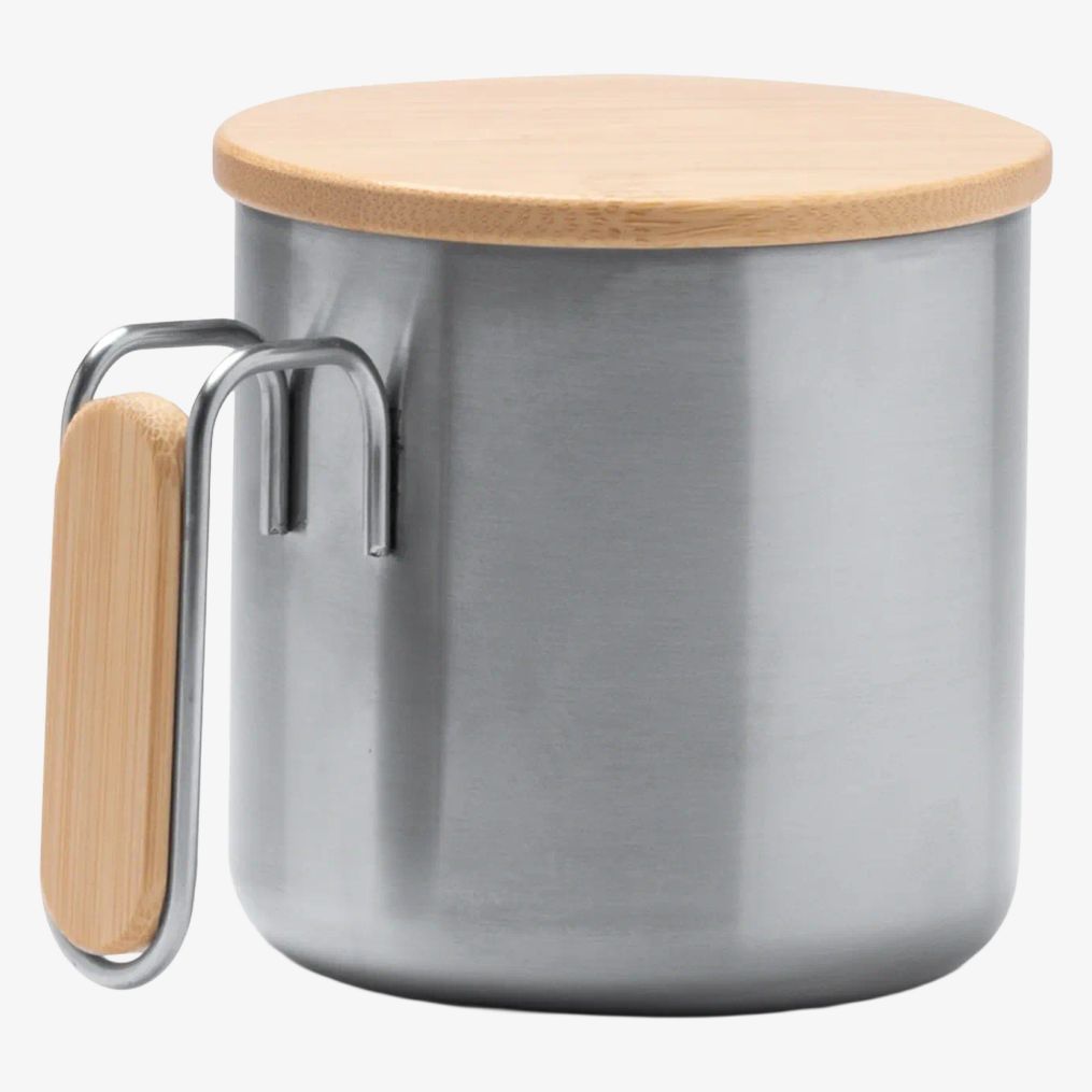 Kubek RIMOR wykonany z recyklingowanej stali nierdzewnej 304 z bambusowym uchwytem. Pojemność 350 ml. Dostarczany w opakowaniu ekologicznym.