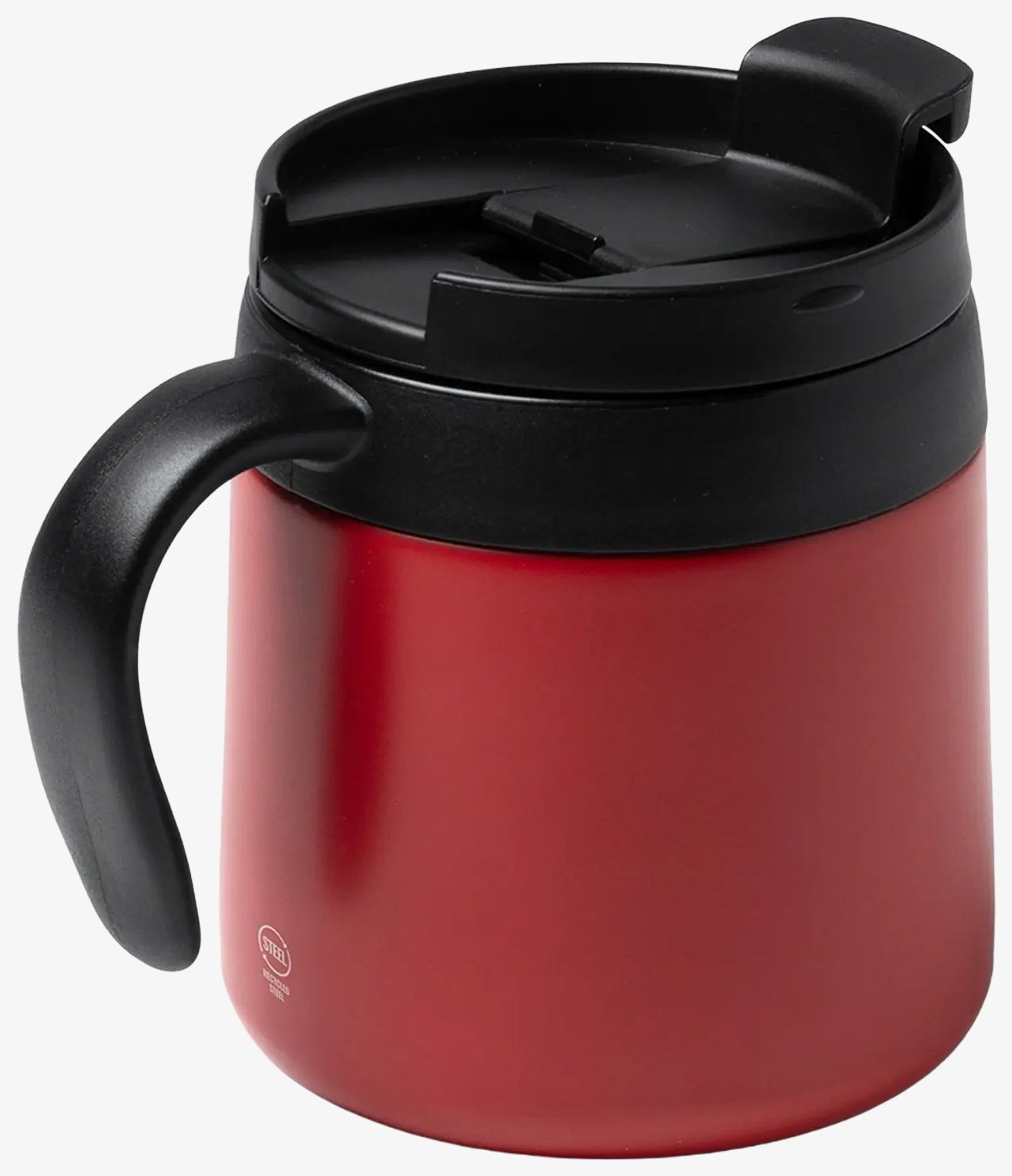 Kubek ze stali nierdzewnej 304 z recyklingu i podwójną ścianką zawiera zakręcane wieczko i uchwyt. Pojemność wynosi 350 ml, dostosowana do codziennego użytku. Opakowanie wykonane jest w koncepcji ekodesign.