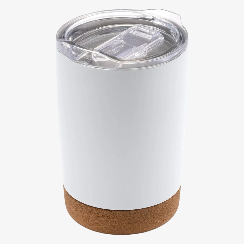 Kubek ze stali nierdzewnej 304 z recyklingu ma pojemność 380 ml z korkową podstawą zapewniającą antypoślizgowe przyleganie. Podwójna ścianka pozwala dłużej utrzymać temperaturę napojów.