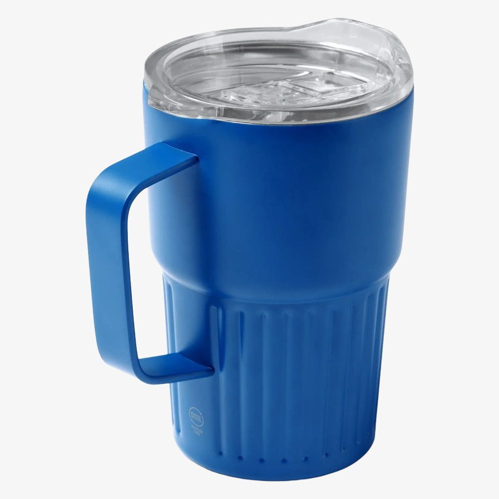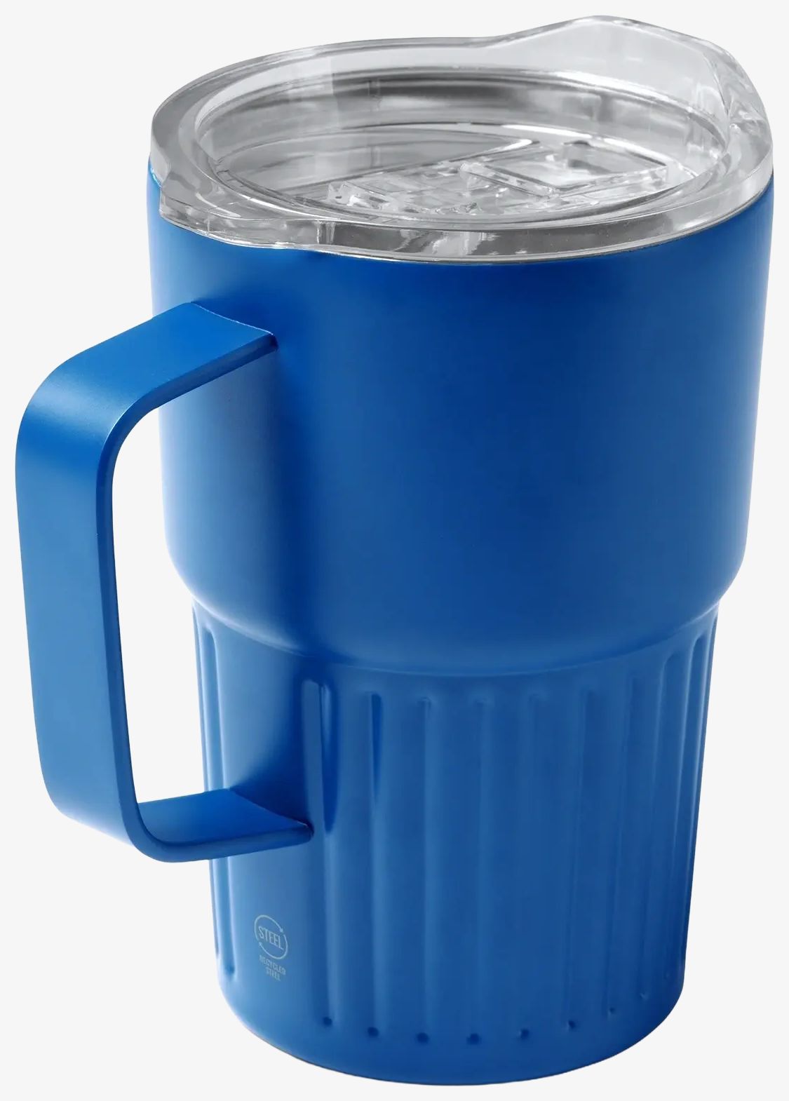 Butelka termiczna ze stali nierdzewnej 304 z recyklingu posiada skośną konstrukcję z podwójną ścianką oraz przezroczystą, bezpieczną pokrywkę. Pojemność wynosi 450 ml. Dostarczana w ekologicznie zaprojektowanym pudełku.