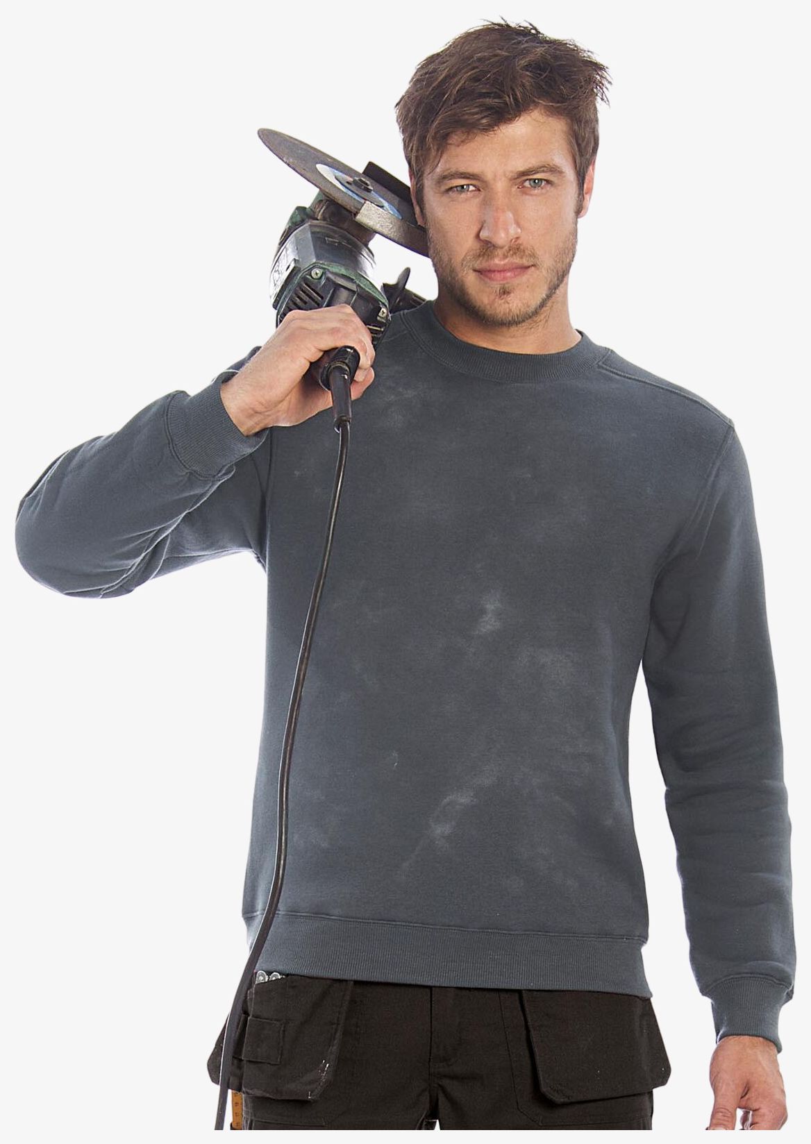 Workwear Sweater to bluza z okrągłym dekoltem i prostymi rękawami, ze wzmocnionymi łokciami i wzmocnionymi szwami do regularnego użytkowania. Ściągacz 2x2 z elastanem przy mankietach i u dołu.