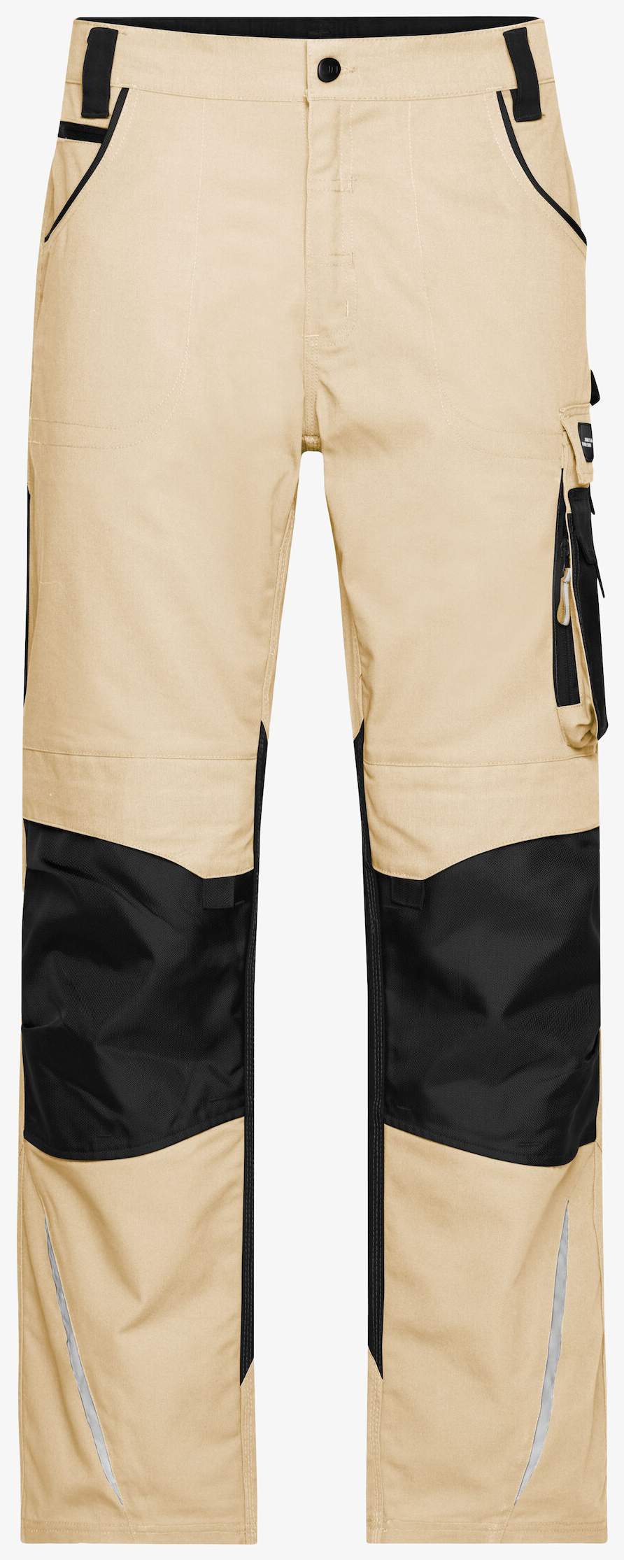Wytrzymałe spodnie robocze Workwear Pants jn832 wykonane z trwałej tkaniny mieszankowej z elastycznym paskiem i szlufkami na pasek. Wyposażone we wzmocnioną kieszeń CORDURA na wysokości kolan oraz liczne praktyczne kieszenie w tym kieszenie skośrowane, kieszenie na narzędzia, dwie kieszenie na zamek, kieszeń na miarę, długopis i telefon komórkowy. Elementy odblaskowe z przodu i tyłu bez funkcji ochronnej.