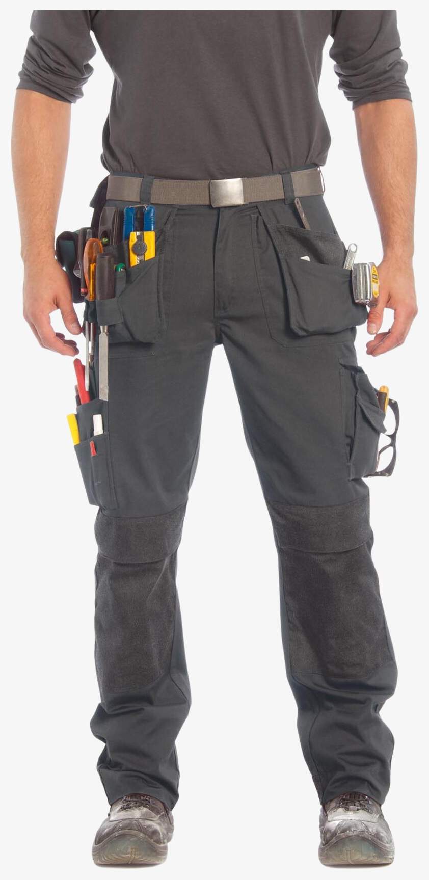 Spodnie robocze PERFORMANCE PRO PANTS do użytku profesjonalnego, ze wzmocnionymi szwami i wieloma funkcjonalnymi kieszeniami, w tym kieszeniami na nakolanniki oraz kieszeniami narzędziowymi. Model wyposażony w elastyczną wstawkę z tyłu pasa, uchwyt do przypięcia oraz poszerzony dół nogawki z przedłużeniem 5 cm.