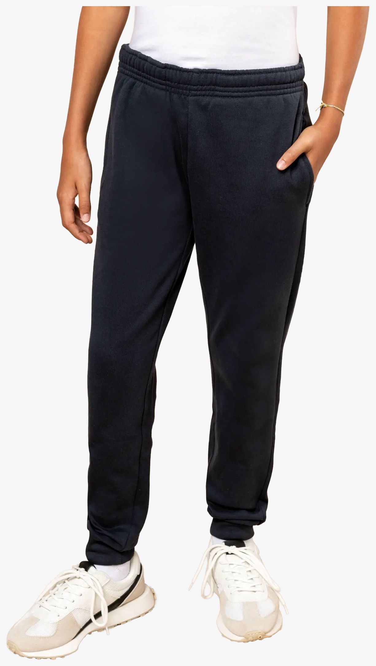 pantalon molleton enfant k7022 jest wykonany z miękkiego, szczotkowanego dresu o prostym kroju. Posiada dwie kieszenie po bokach, elastyczną talię z płaskim sznurkiem do ściągania oraz ściągacze na dole nogawek.