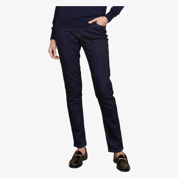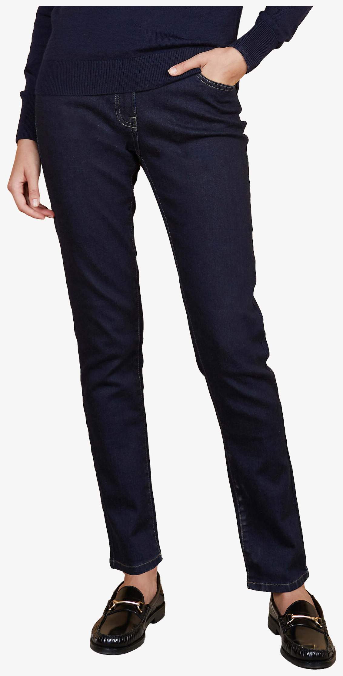 Damskie jeansy stretchowe charakteryzują się prostym krojem i stylem z 5 kieszeniami, obejmującym dwie kieszenie przednie, kieszeń na bilet oraz dwie naszywane kieszenie tylne. Zapięcie na zamek błyskawiczny i guzik z szlufkami na pasek. Napki wykonane z matowego metalu.