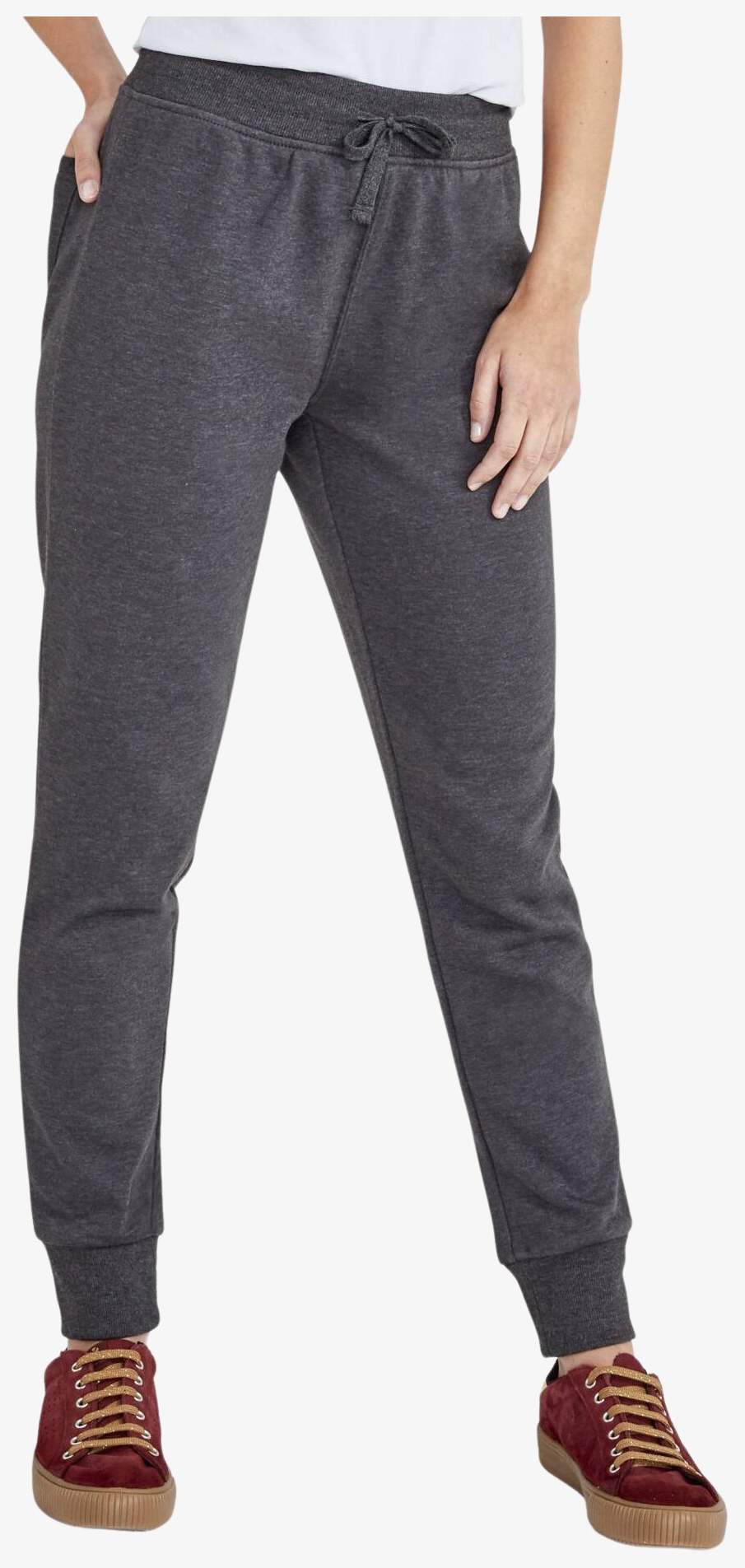 Spodnie dresowe damskie slim Jake Women wykonane z materiału drapanego 50% bawełna 50% poliester zapewniają miękki i wygodny materiał. Posiadają tylną naszywaną kieszeń oraz sznurek w talii dla regulowanego dopasowania. Dół nogawek wykończony ściągaczem 2X2.