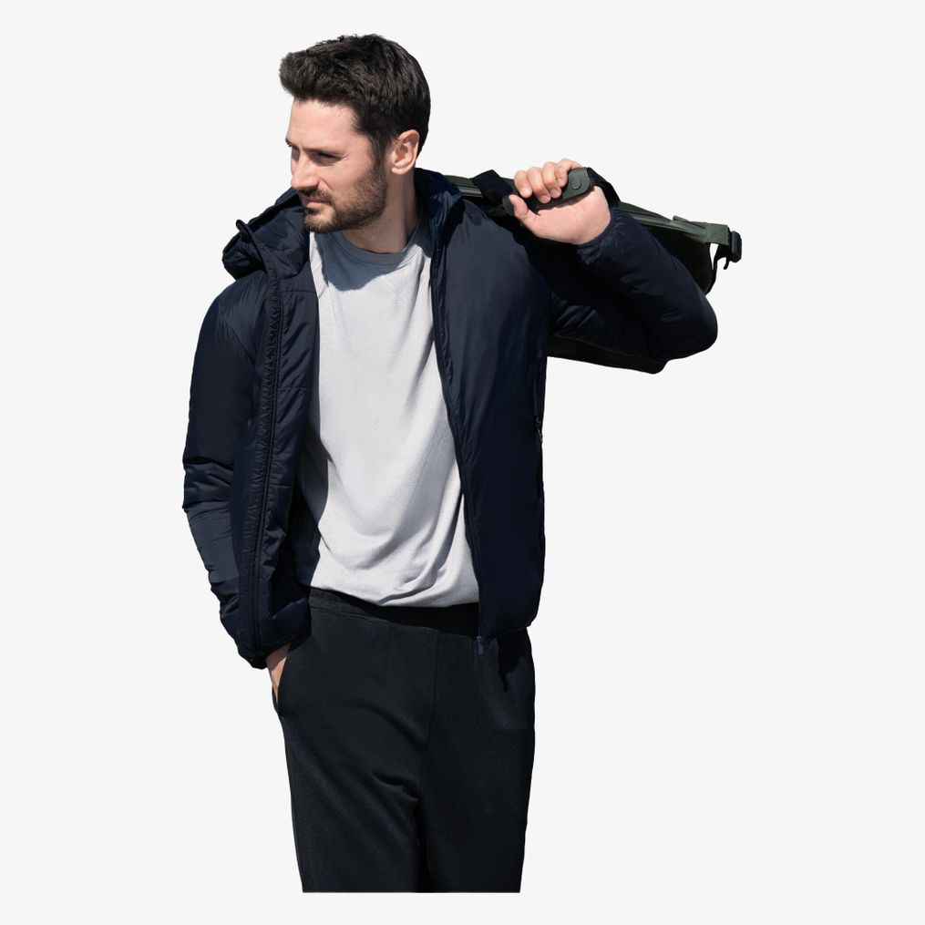 Kurtka Aspen Men to lekka parka z kapturem, przeznaczona do użytku przez cały rok. Łączy zewnętrzną tkaninę z nylonu z recyklingu i grafenu z podszewką z nylonu z recyklingu oraz ociepliną izolującą Sorona Aura. Model jest łatwy do przenoszenia i zapewnia izolację porównywalną z puchem.