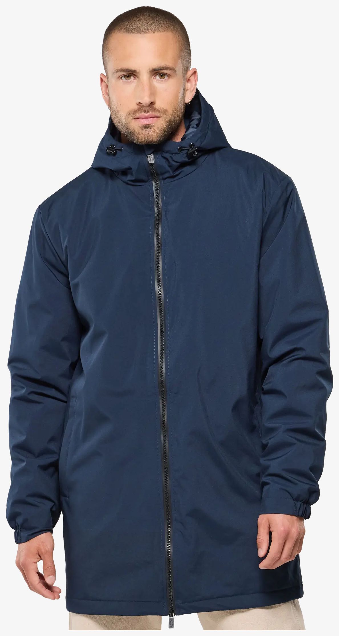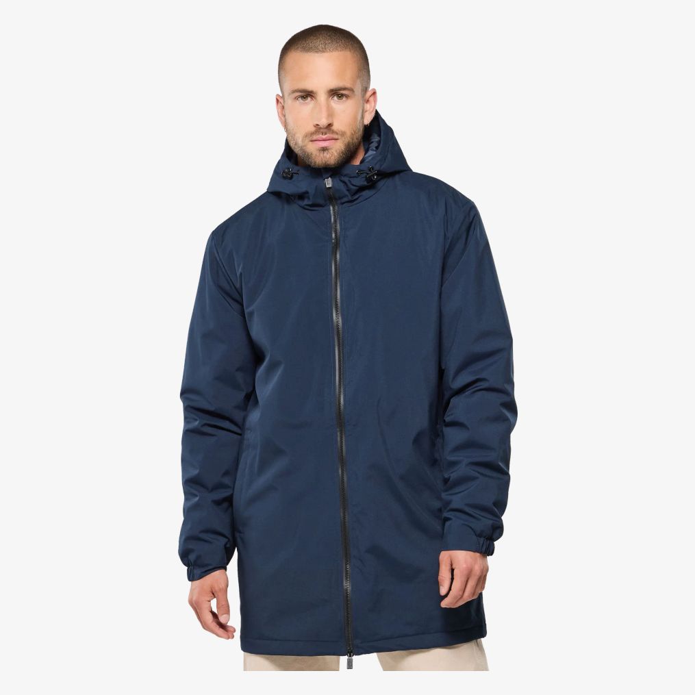Lekka długa parka unisex zawiera 2 boczne kieszenie i 1 wewnętrzną kieszeń z elastycznymi mankietami. Wodoodporność mieści się między 4000 a 5000 mm.